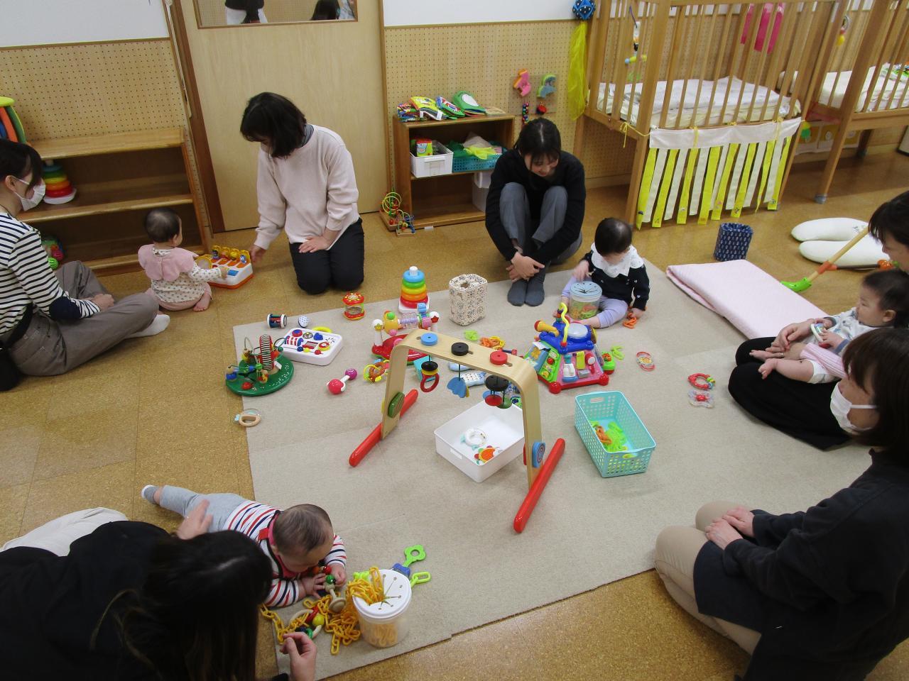 その中でも、気になるおもちゃにそっと手を伸ばしてみたり、お友だちや保育者の顔をじーっと見つめたりと、子どもたちなりに「保育園」という場所を確かめていました。