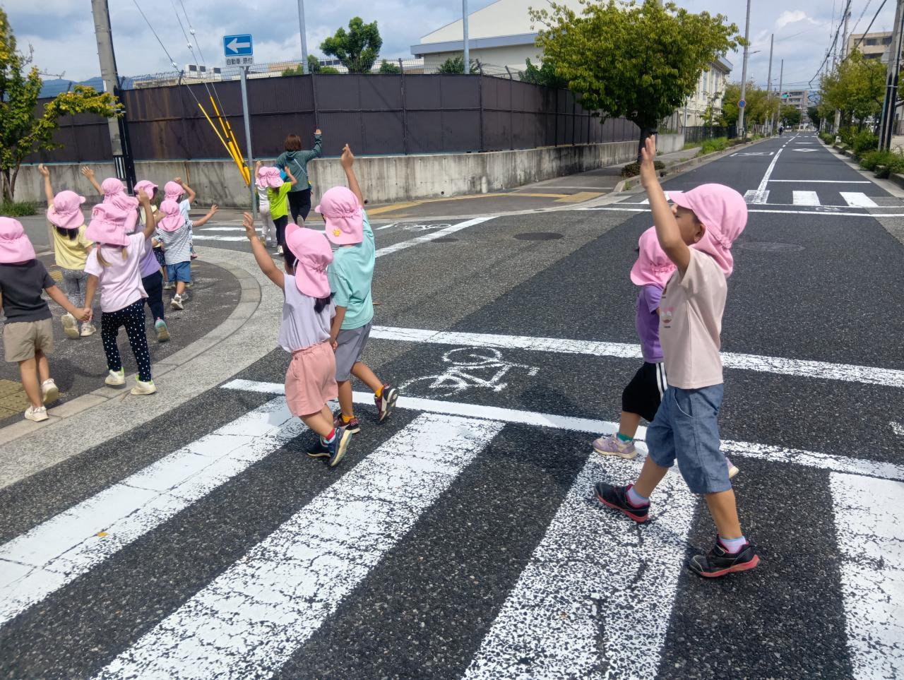 保育園から歩いて、ポストに投函に行きました。
