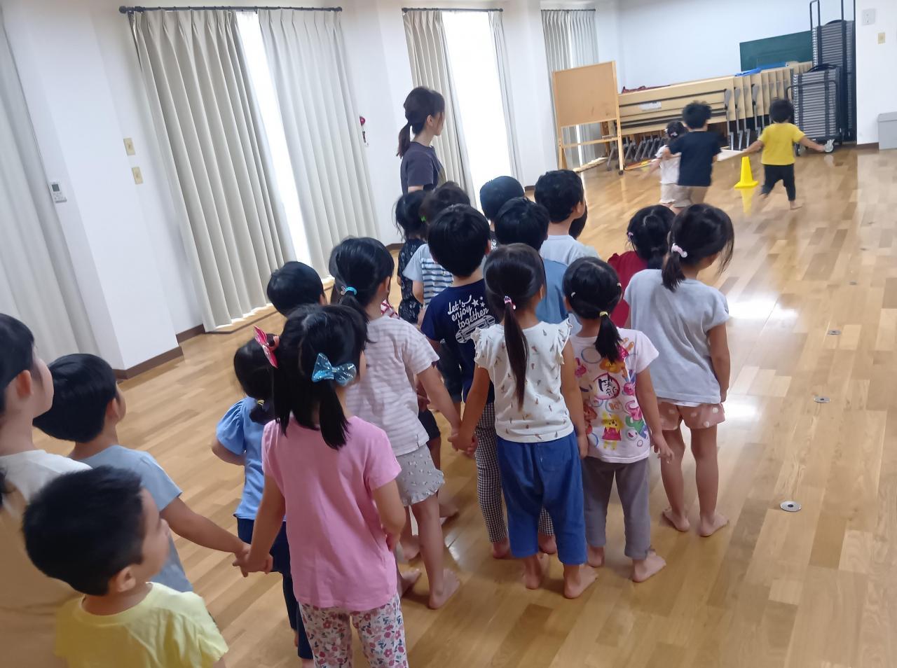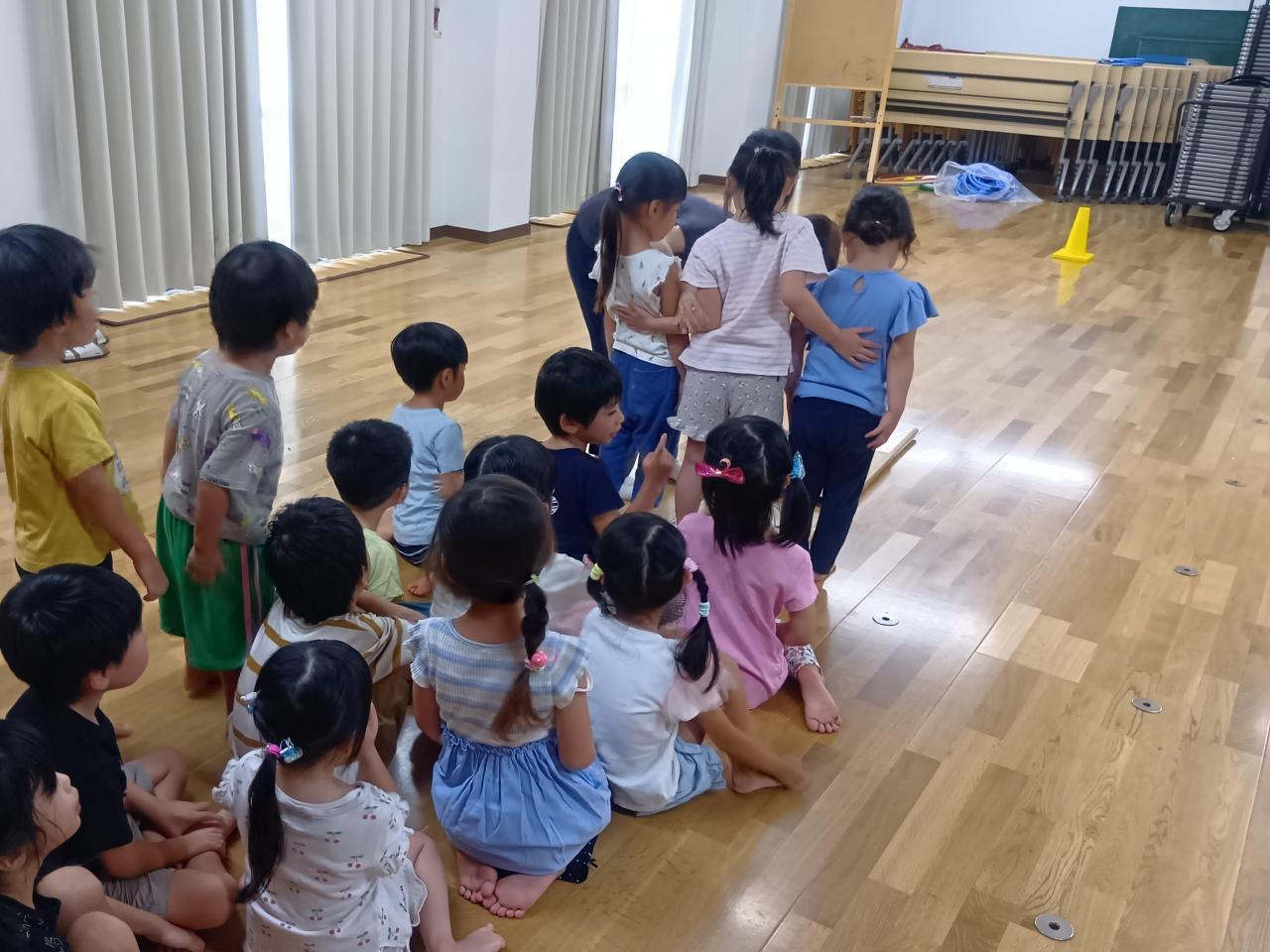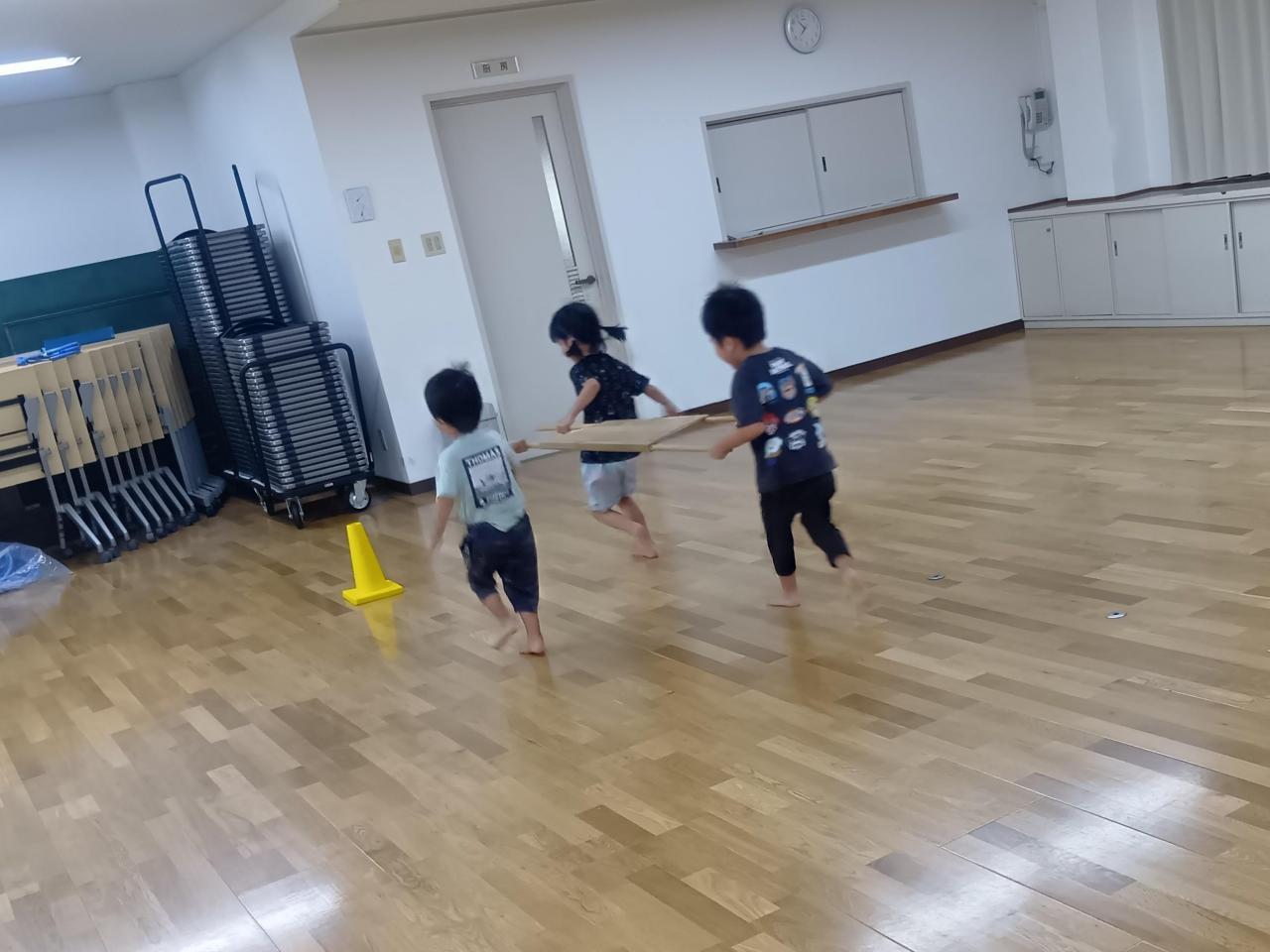 クラス対抗の競技もあるのですが、赤さん、黄色さん、青さんで3人組になり、力を合わせてお神輿を運びます。お神輿がバトンになり、次のお友だちにつないでいきます。今日はホールで初めて練習をしました。最初は難しそうにしていた子どもたちたちですが、少しづつコツを掴んできた様子です。絶対勝つぞー!と、もうすでにやる気満々の子どもたちです。親子で遊ぼうデーまで、みんなで楽しんで練習できればと思っています。