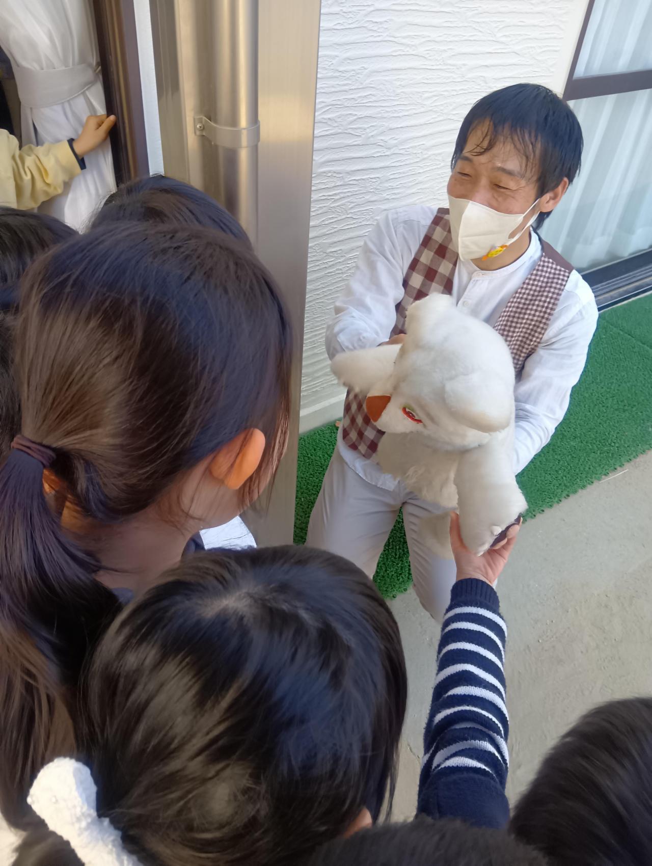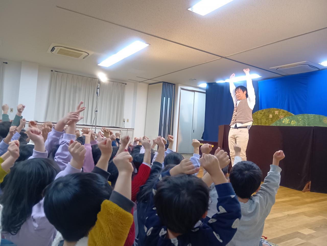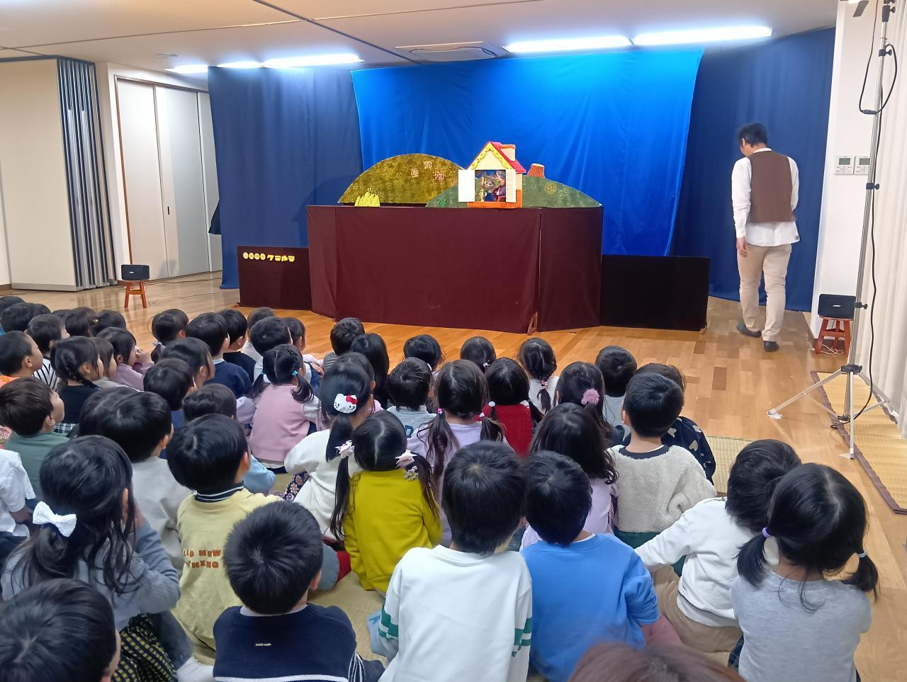 1月23日㈮劇団クラルテさんが来てくれました。いつも楽しい人形劇を見せてくれるので、子どもたちはとても楽しみに待っていました。ホールには幼児クラスだけではなく、もも組ぶどう組の子どもたちも集まって、みんなワクワク!