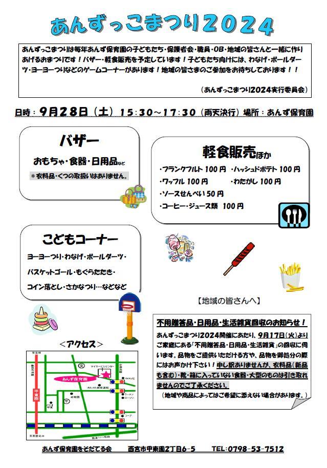 また、あんずっこまつりの開催にあたり、9月17日(火)よりご家庭にある「不用贈答品・日用品・生活雑貨」の回収に伺い