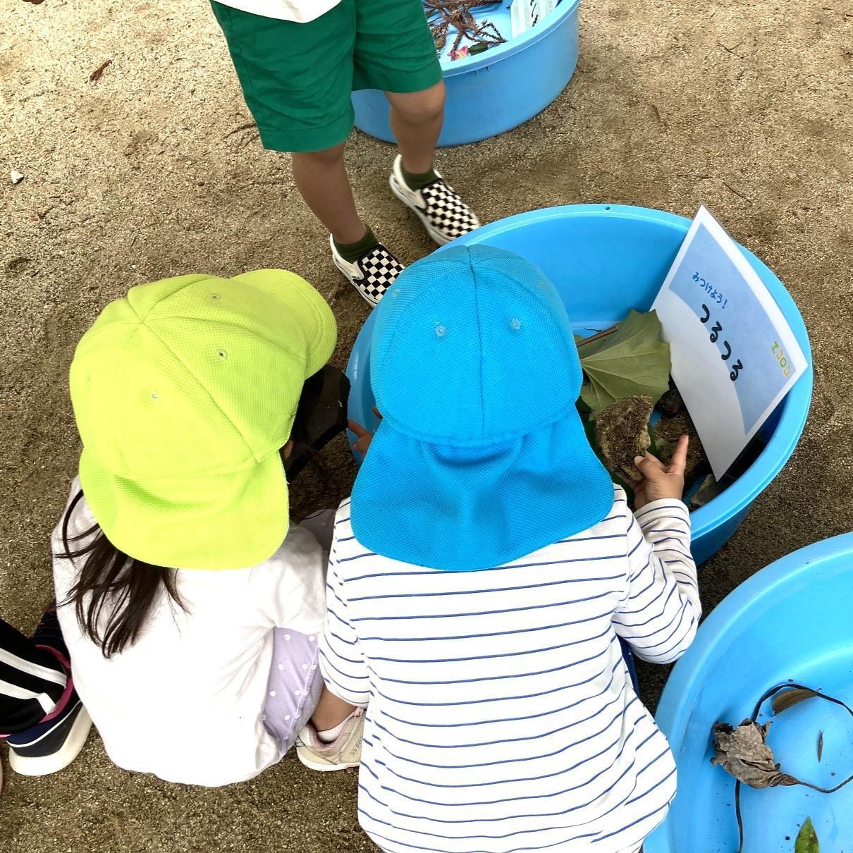 今日はあいにくの空模様でしたが、「フキの葉っぱ」「杉の葉」「ツバキの葉」「サツキの花」「アリ」「ダンゴムシ」「ハサミムシ」「ナメクジ」など、個性豊かな自然物を園庭から探してきてくれました!