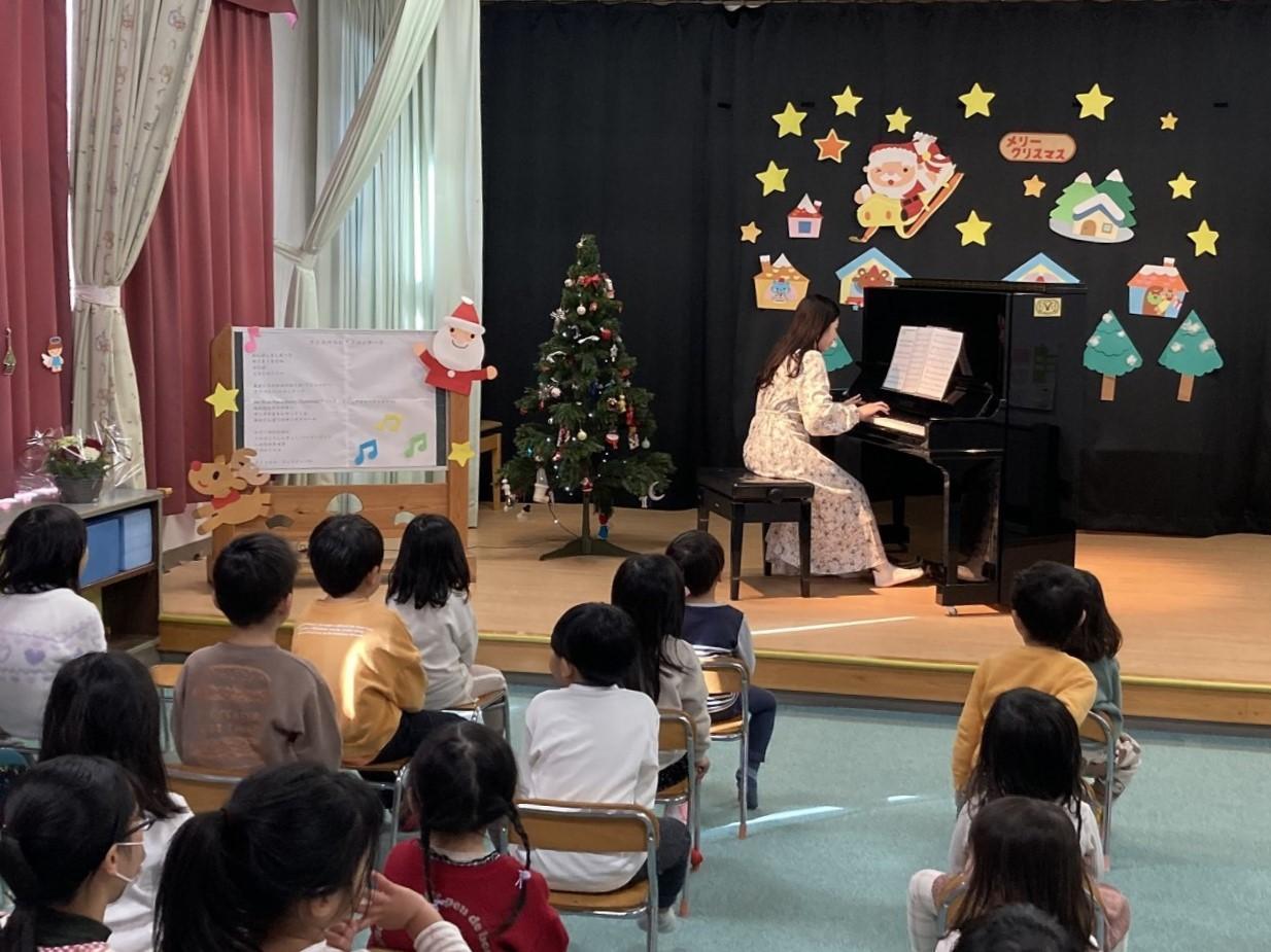 当園の「おんがくあそび」講師のピアニスト「内田友咲」さんによる、ピアノコンサートを遊戯室で行いました。