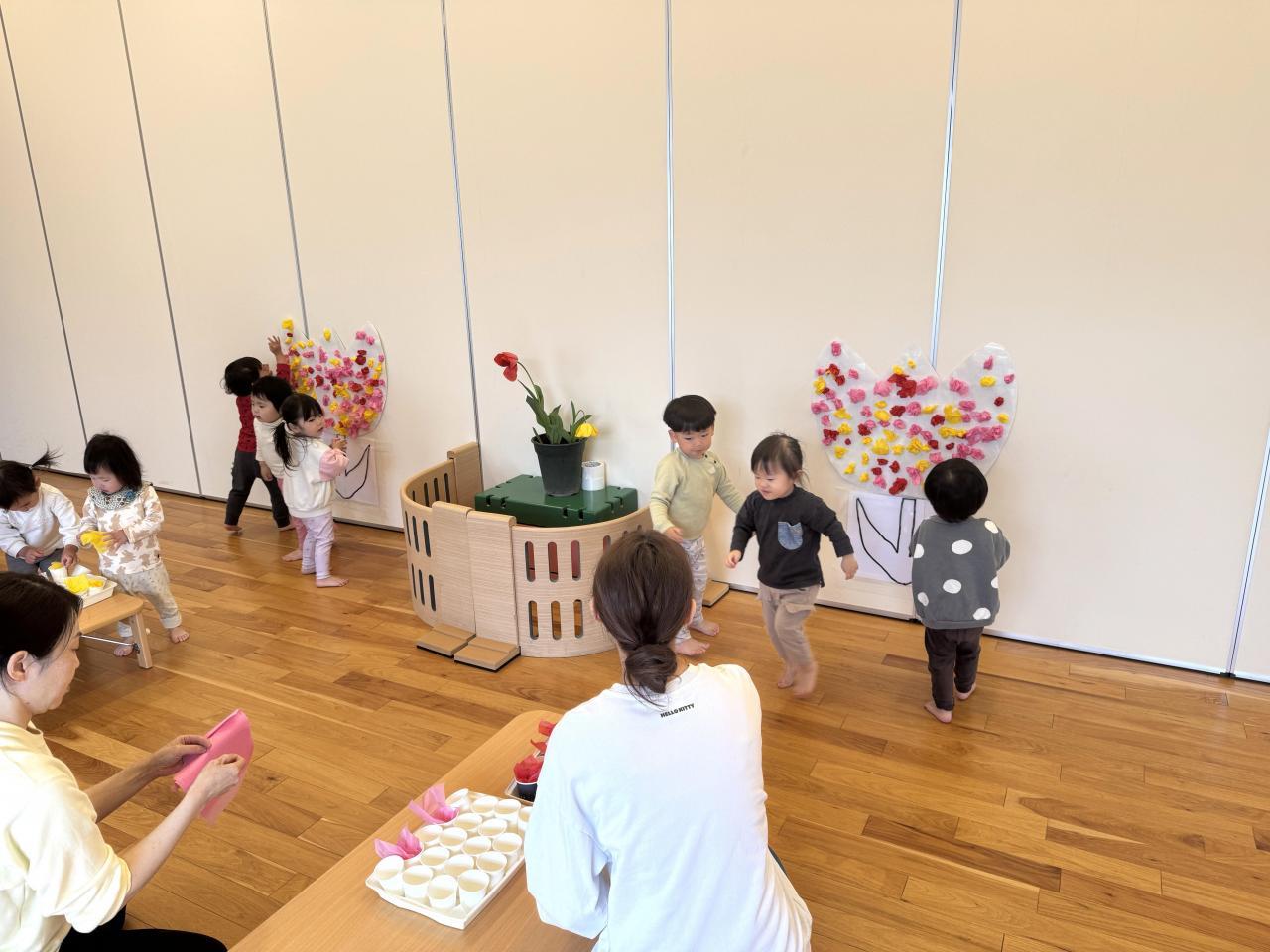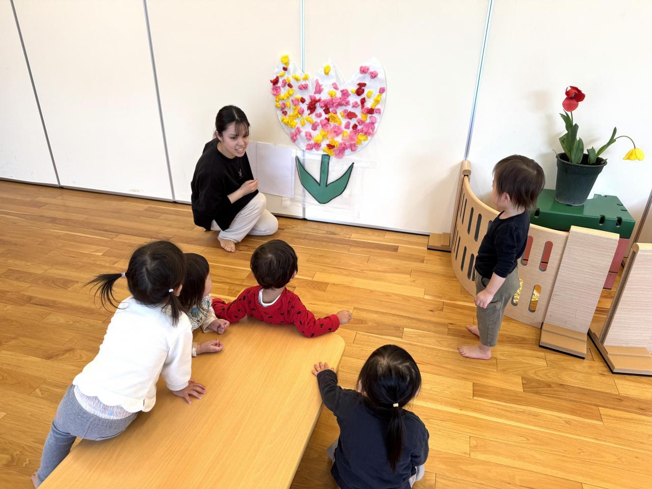 11日には、2階ホールで花紙を使ったチューリップの製作あそびをしました。