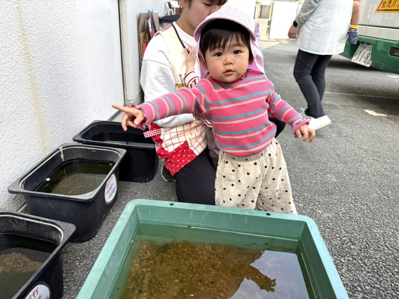 17日には、1歳児クラスの子どもたちが園の周りと安井幼稚園の北園庭にあそびに行きました。