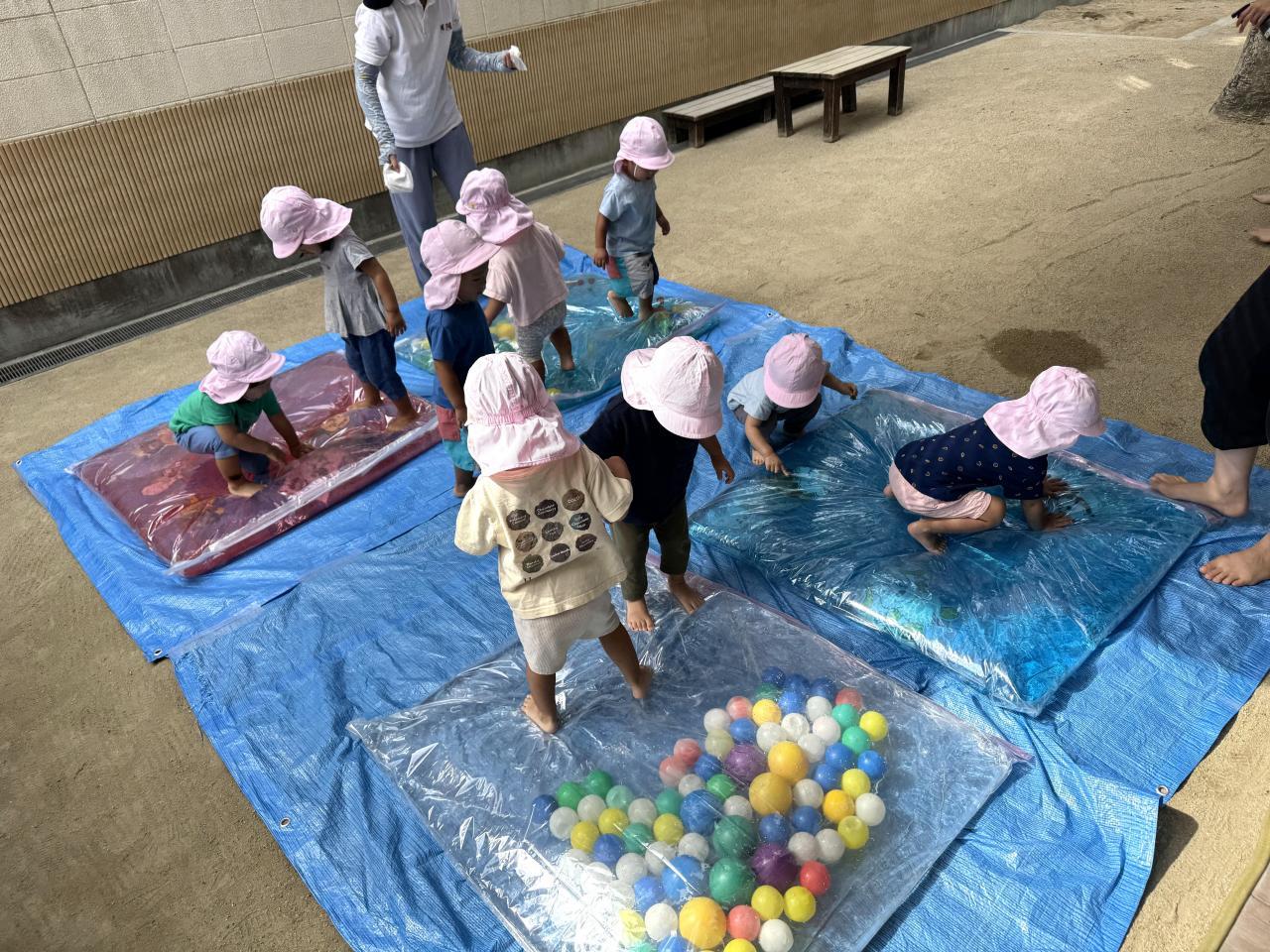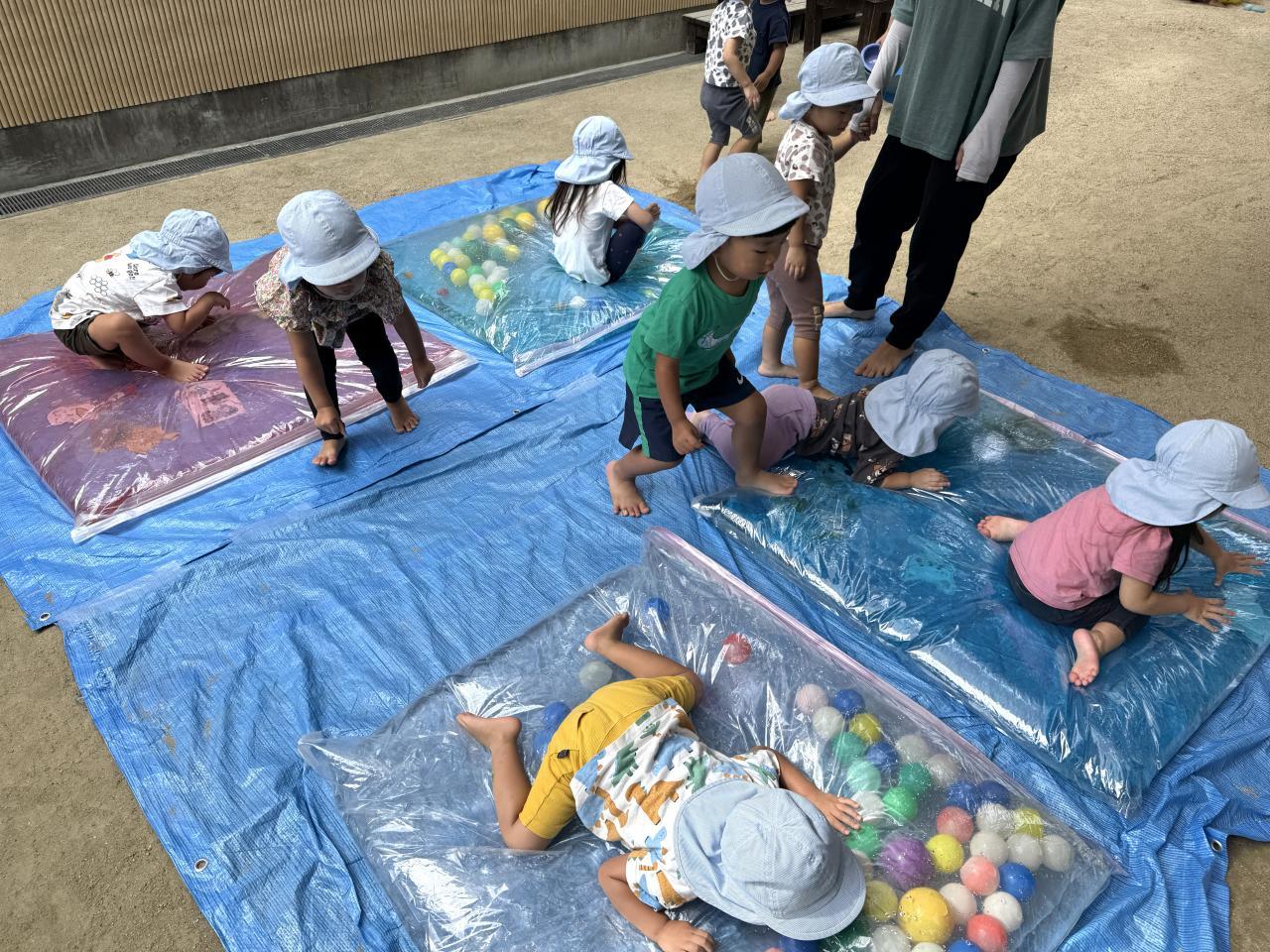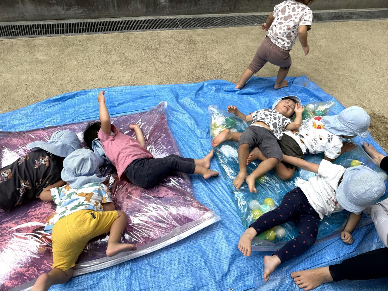 24日には、保育園の子どもたちがウォーターベッドであそびました。