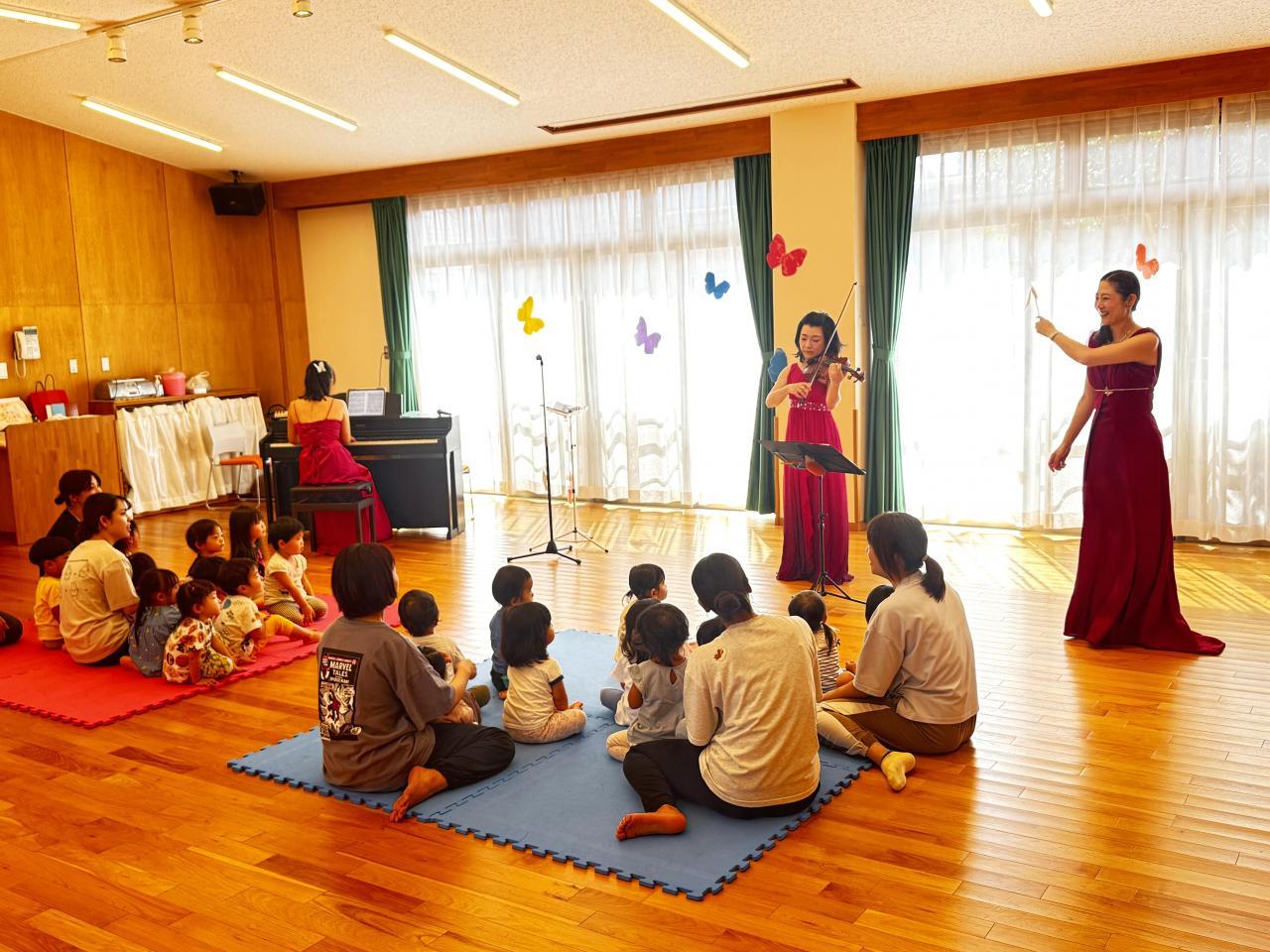 8日はアンサンブルちょうちょさんの楽器演奏会があり、保育園の子どもたちと子育て支援教室の子どもたちが一緒に参加しました。