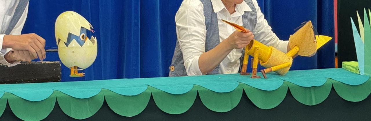 『たまご まごまご』と『ぶたのたね』の2つのお話で、『たまご まごまご』では、たまごの中からひよこの足がピョコン!と出てくると、ビックリする子どももいれば、笑って喜ぶ子どももいたりといろいろな楽しい反応がありました。
