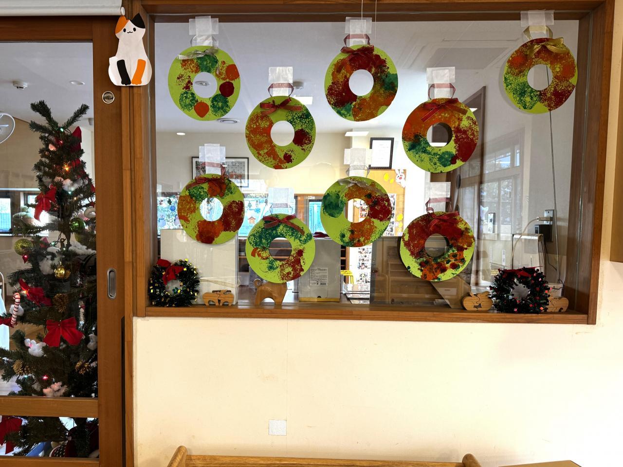 リボンをつけてリースが完成すると、早くサンタさんが来ないかな~と待ち遠しそうな子どもたちでした。