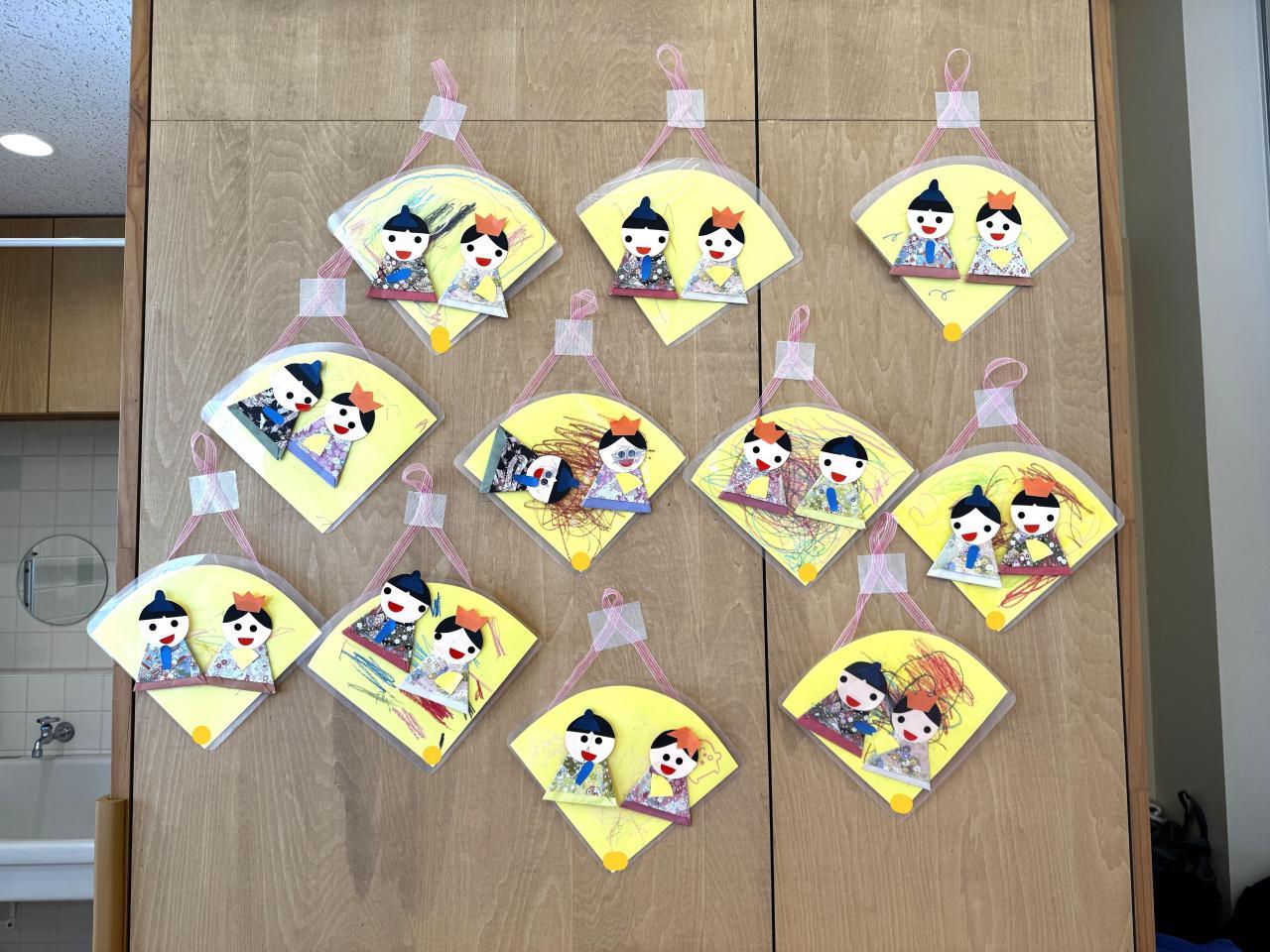 19日の子育て支援教室では、ひなまつりの製作あそびをしました。