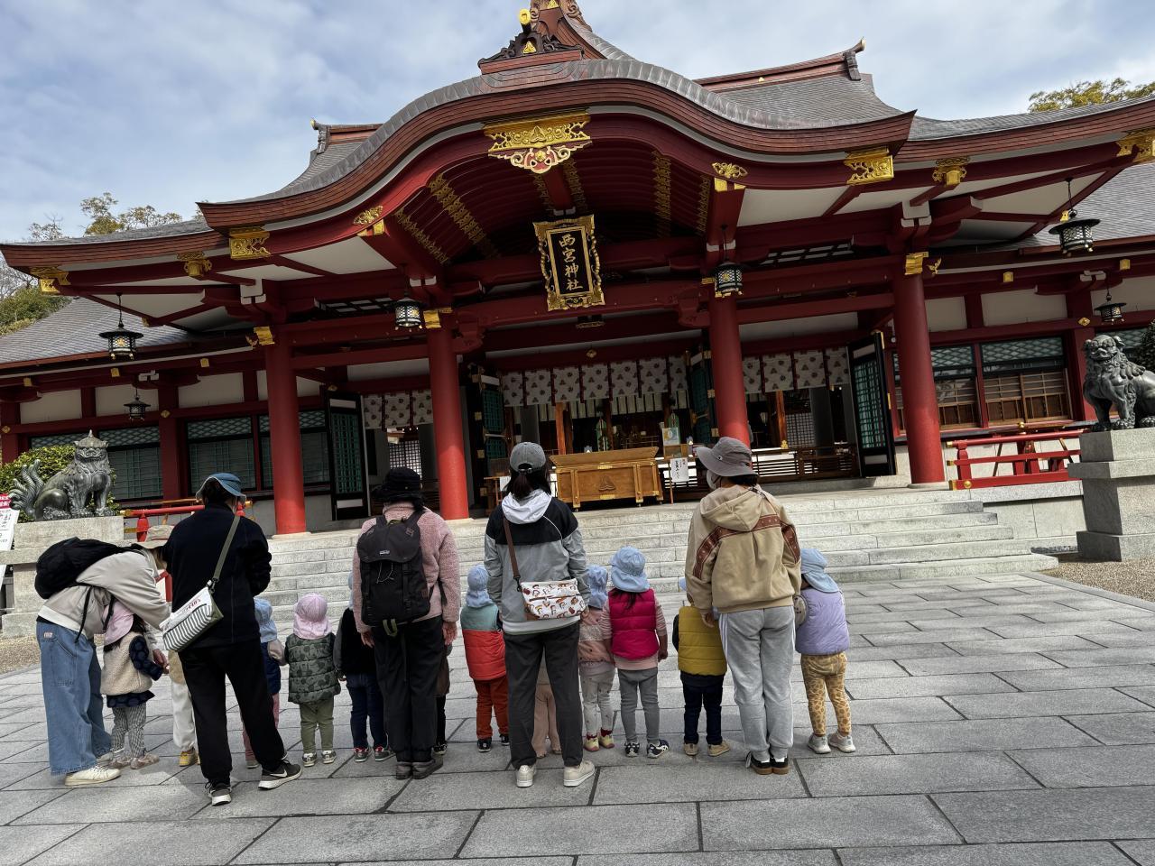 6日には1・2歳児クラスの子どもたちみんなで西宮神社へ散歩に行きました。