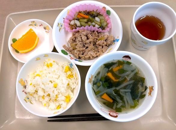 8月のおたんじょう会の給食は、旬のとうもろこしを