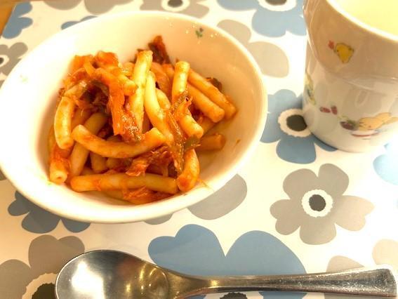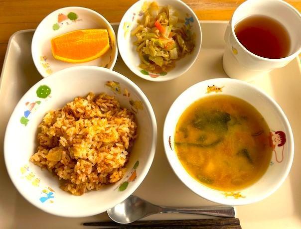 保育園に着いたら早速、給食の時間でした。今日の給食は