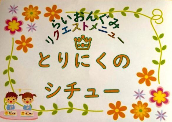 今日は給食の「鶏肉のシチュー」が、リクエストメニューでした。