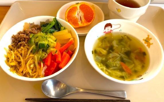 給食の時間にランチルームに行き、ビビンバをリクエストして