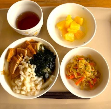 お友だちも「きつねうどん、おいしい」と「おかわりくだ