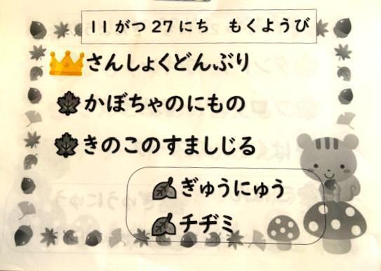 給食の時間には、全員お腹がぺこぺこでした。