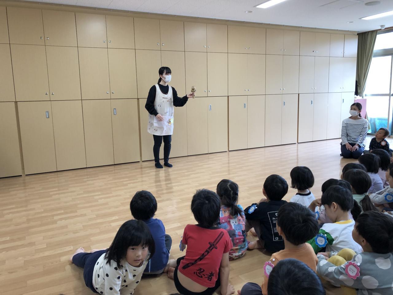 保育士の紹介では特技を披露してくれました!けん玉やスケッチブックシアターをしてくれたりし、子どもたちも楽しんで見ていました!