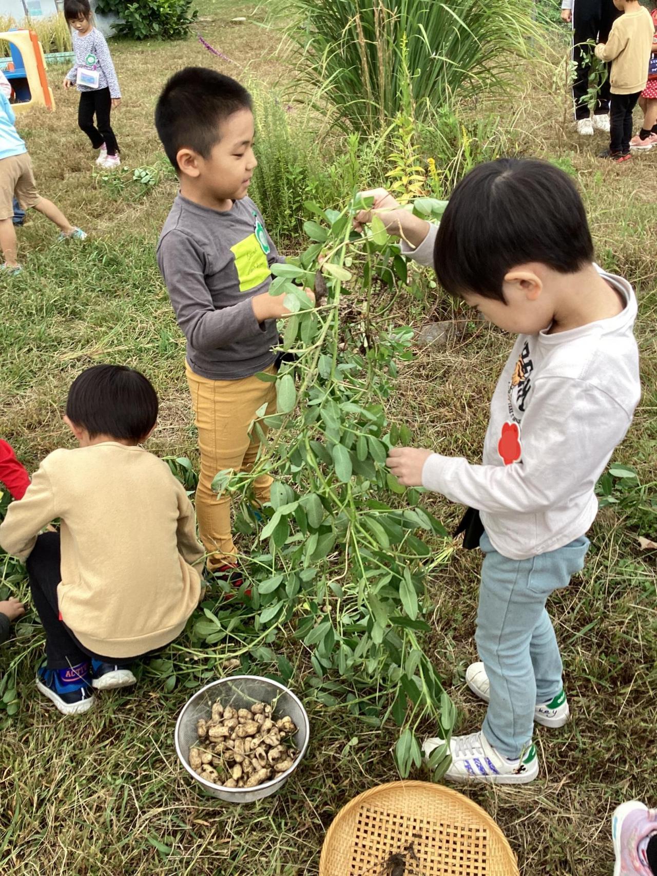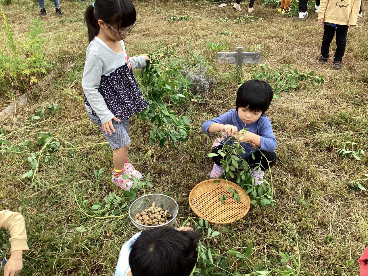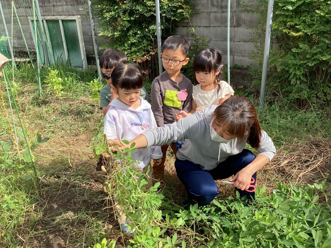 今日は松梅桃組(5、4、3歳児)で落花生の収穫を行います。