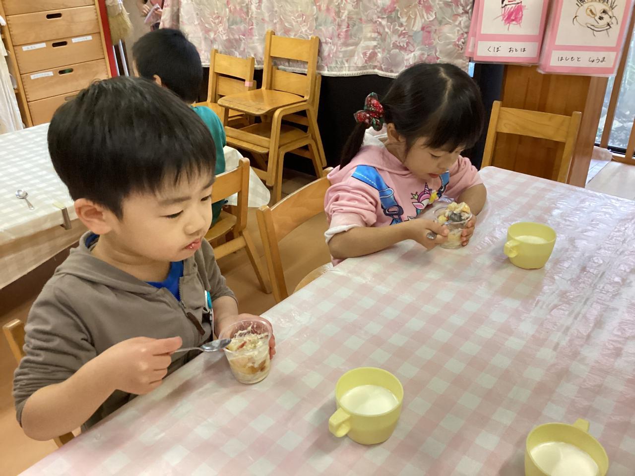保育園では初めてのおやつ「ヨーグルトトライフル」