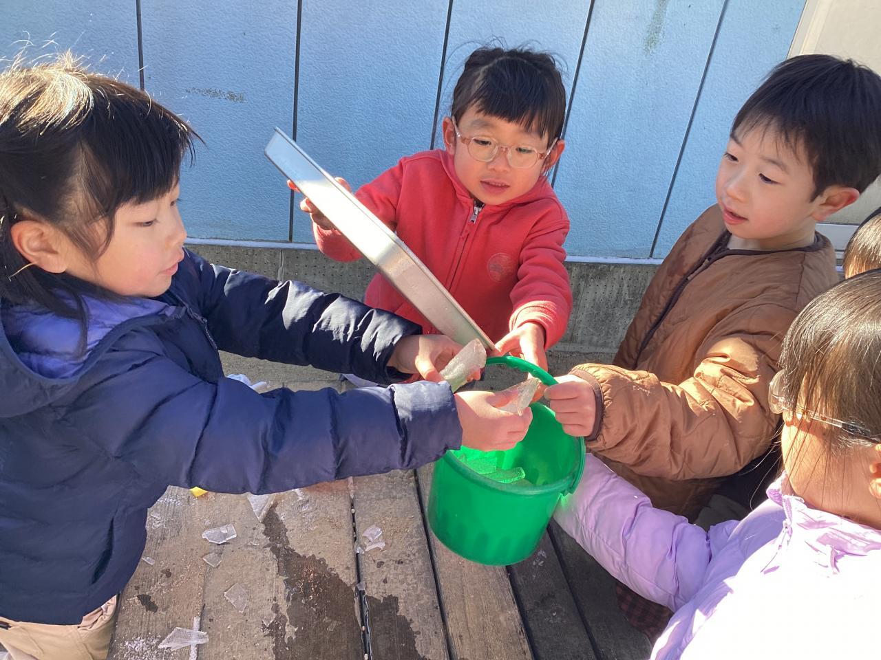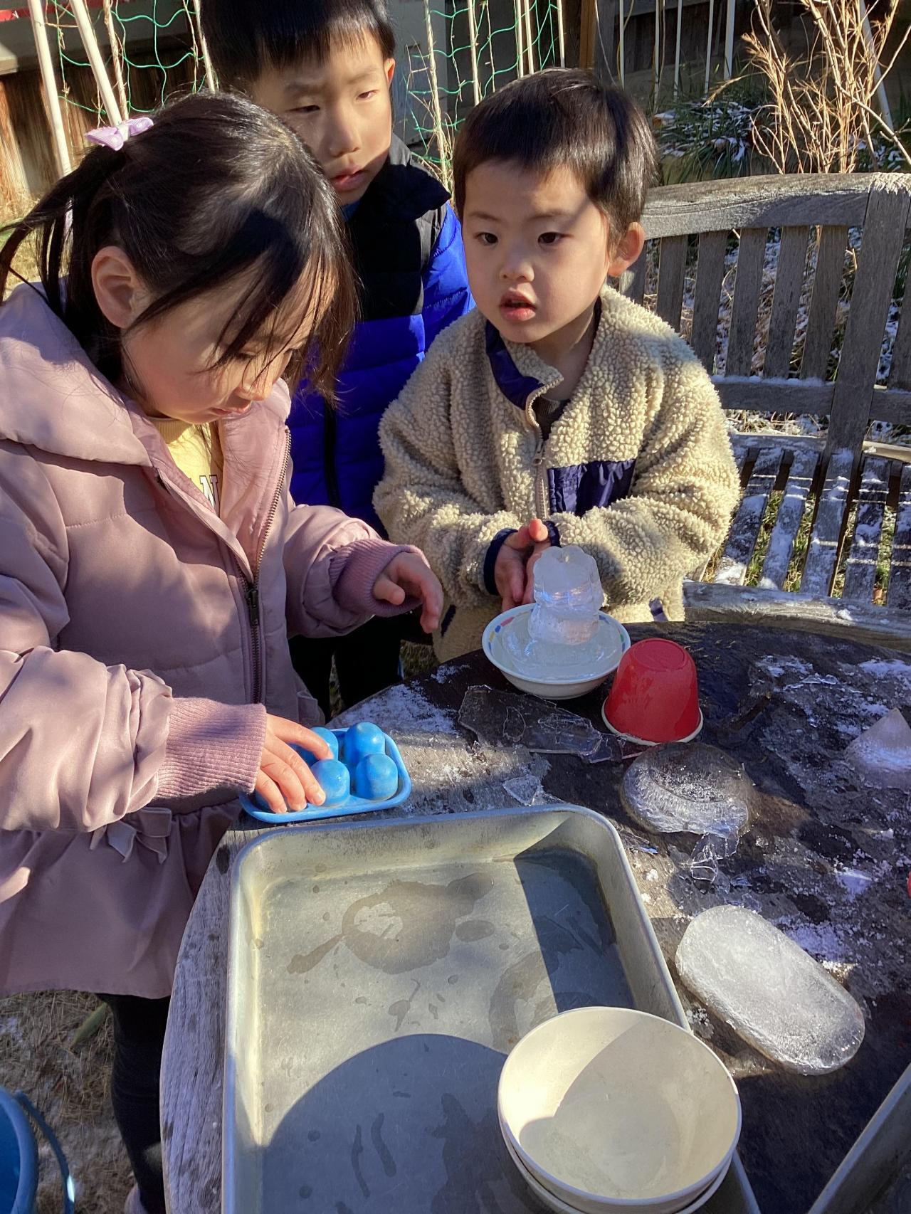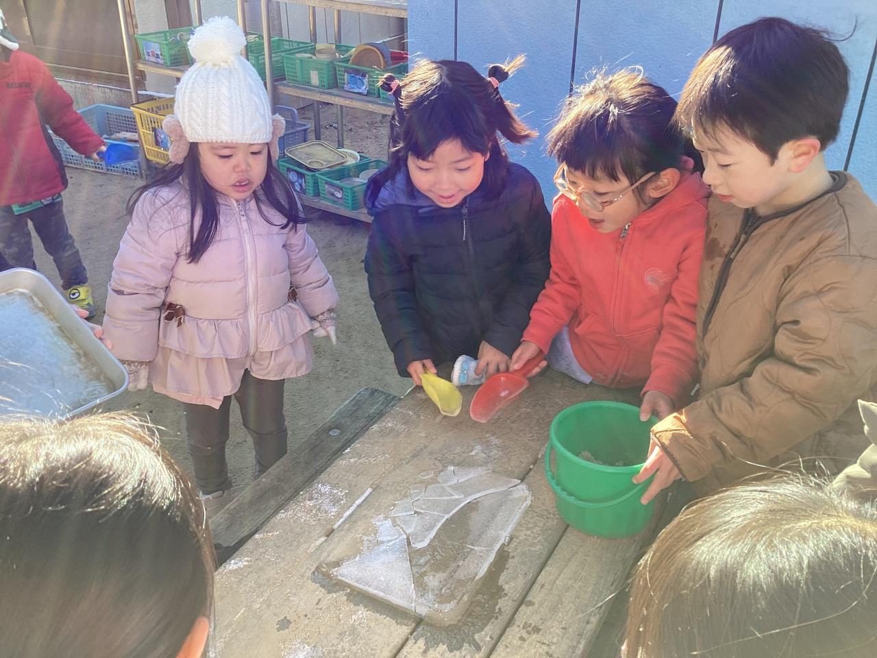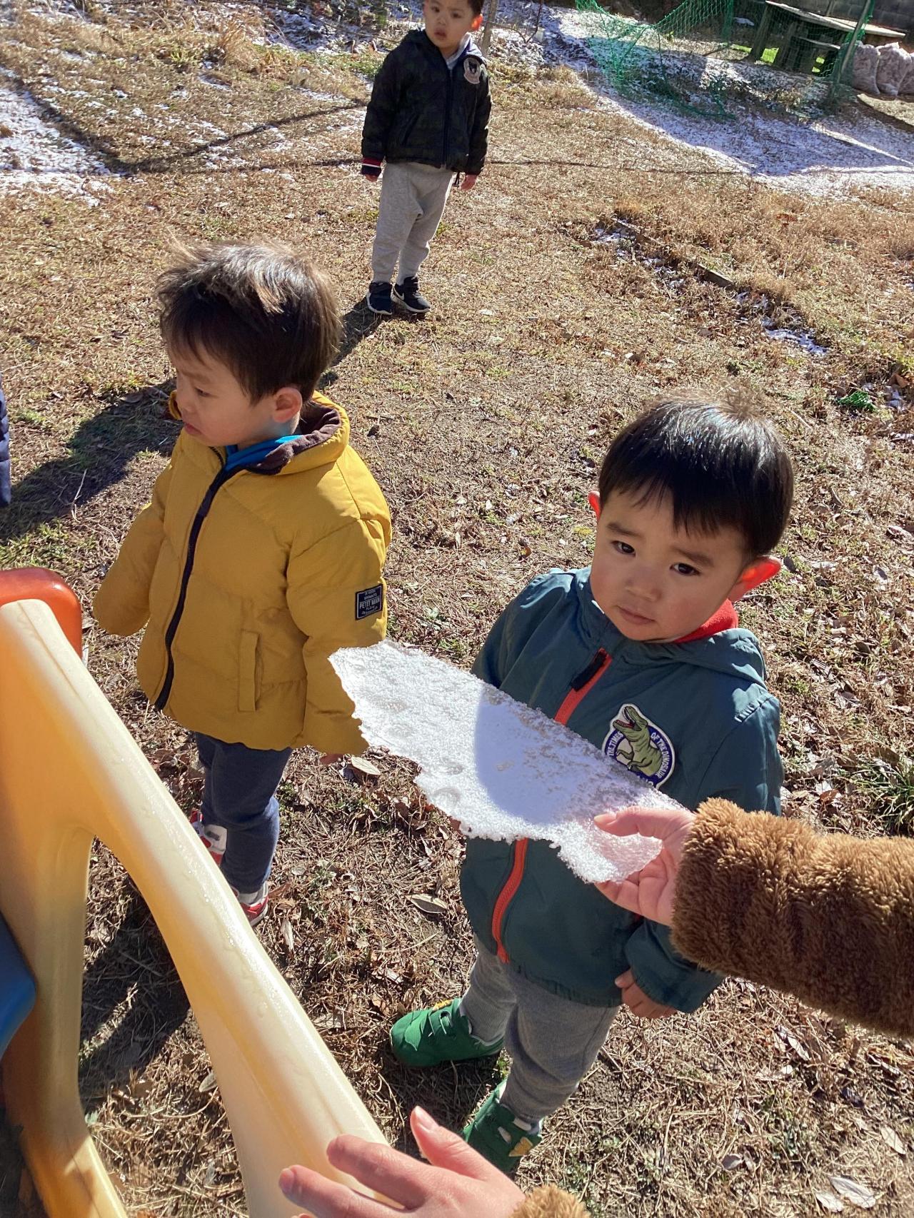 他、クラスの雪遊び、氷遊びの写真もお楽しみください☺️