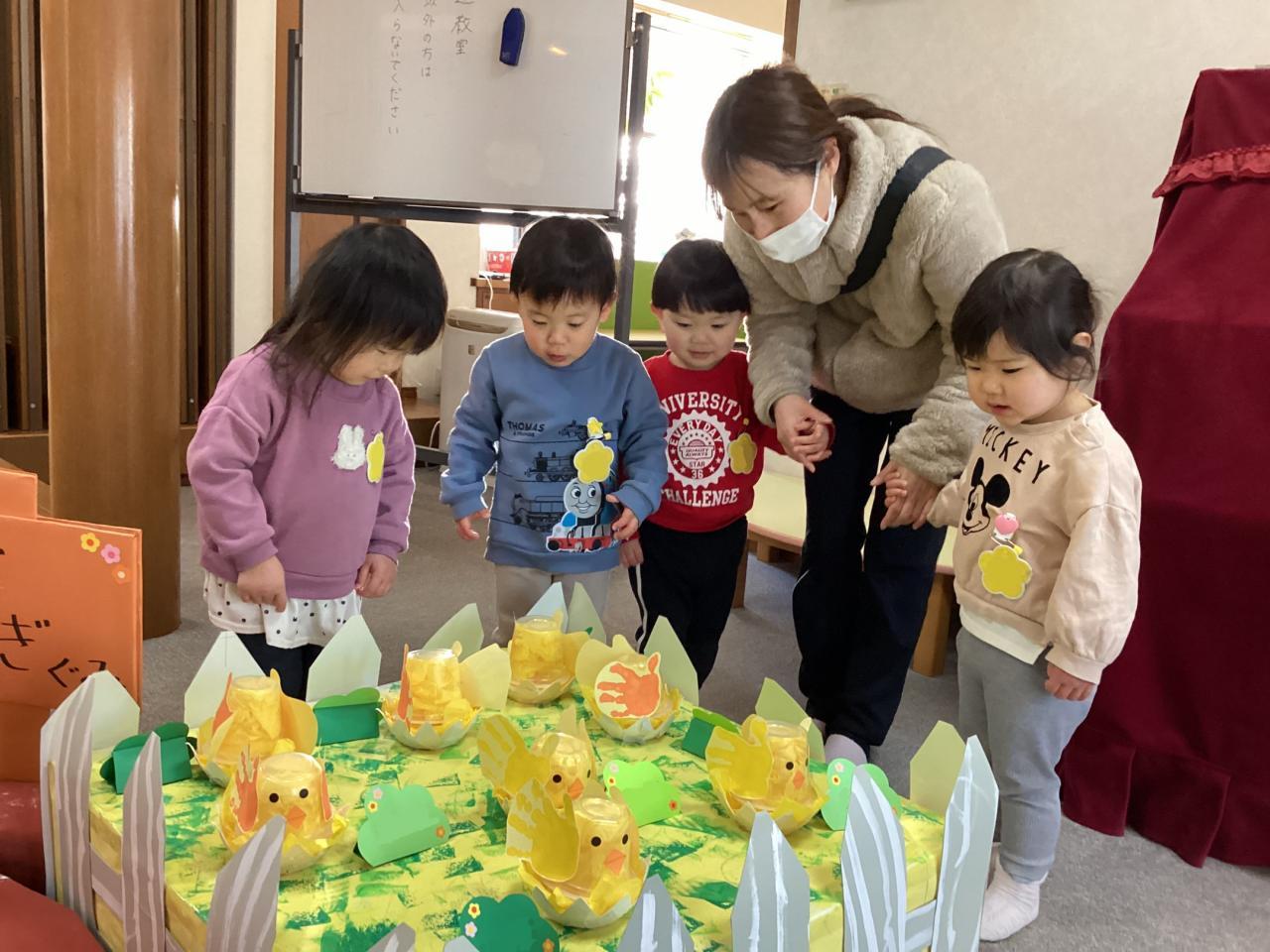 丁度、写真を撮りに行った時に鳩組(2歳児)雛組(1歳児)に遭遇したので、その様子を少しだけご覧下さい。