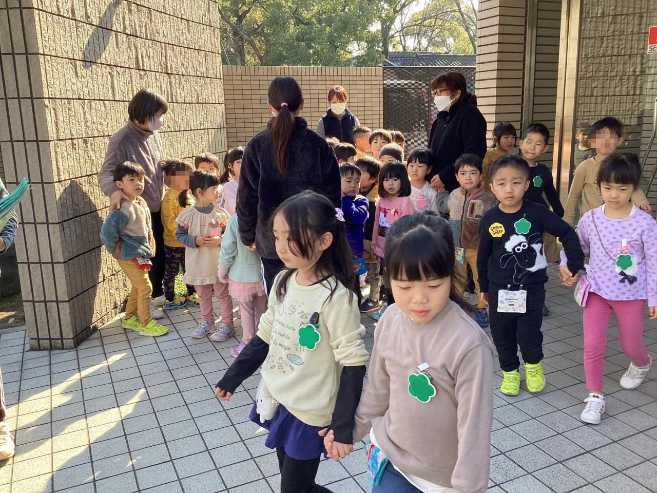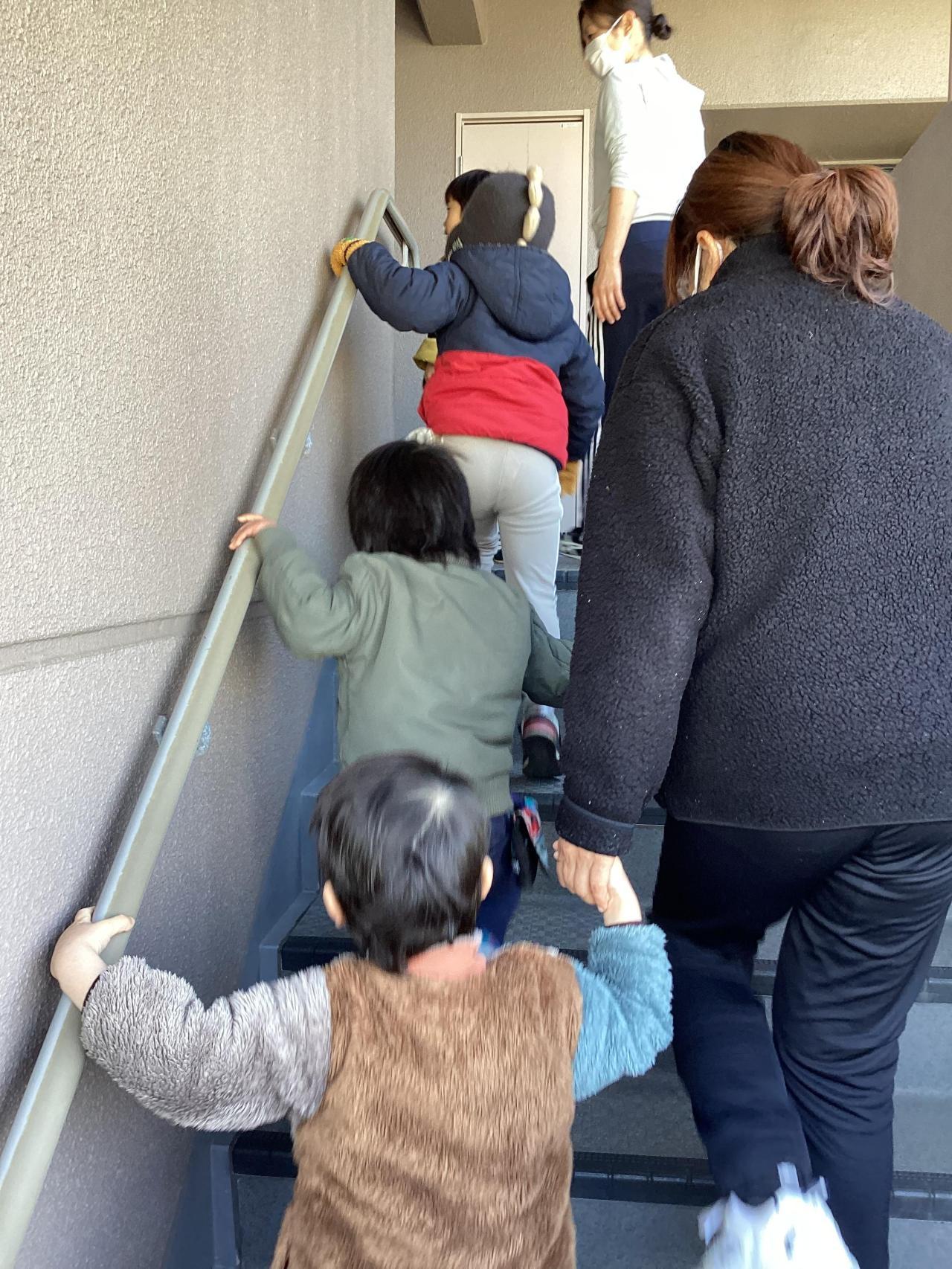 避難場所に到着。再び点呼の後、年少組は保育園へ帰園。年長組は建物の高層階まで避難しました❗️
