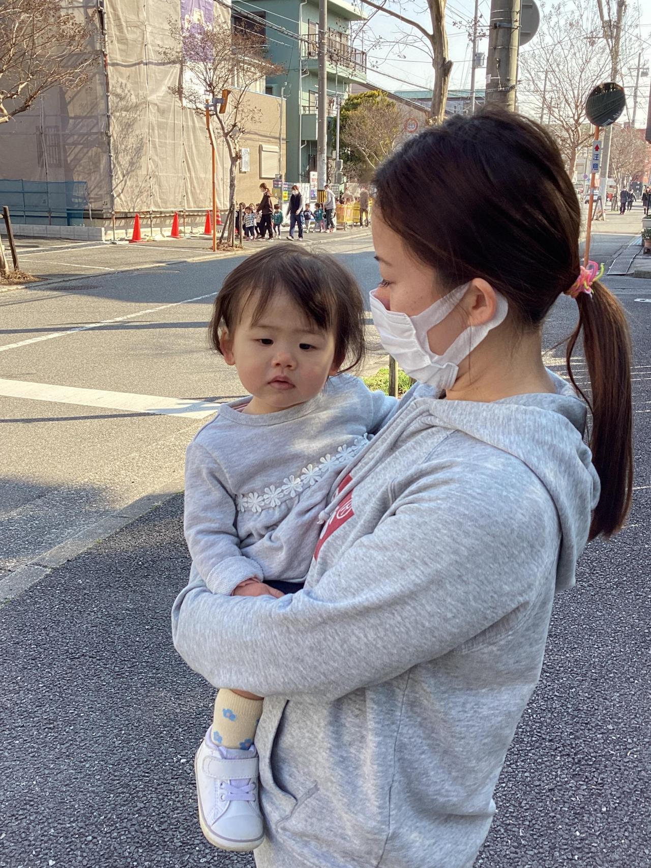 うさぎ組(0歳児)の新しいお友達も先生に抱かれて一緒に避難☺️