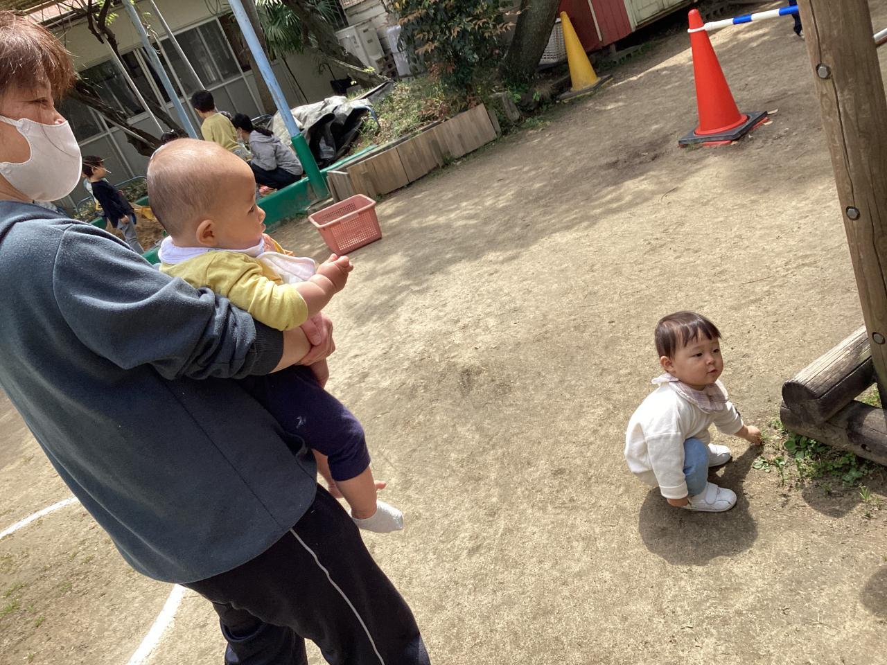 4月は新しいクラス、先生や環境に慣れてもらう為、のんびりとポカポカ陽気の中、外遊びを楽しむクラスが多いです。