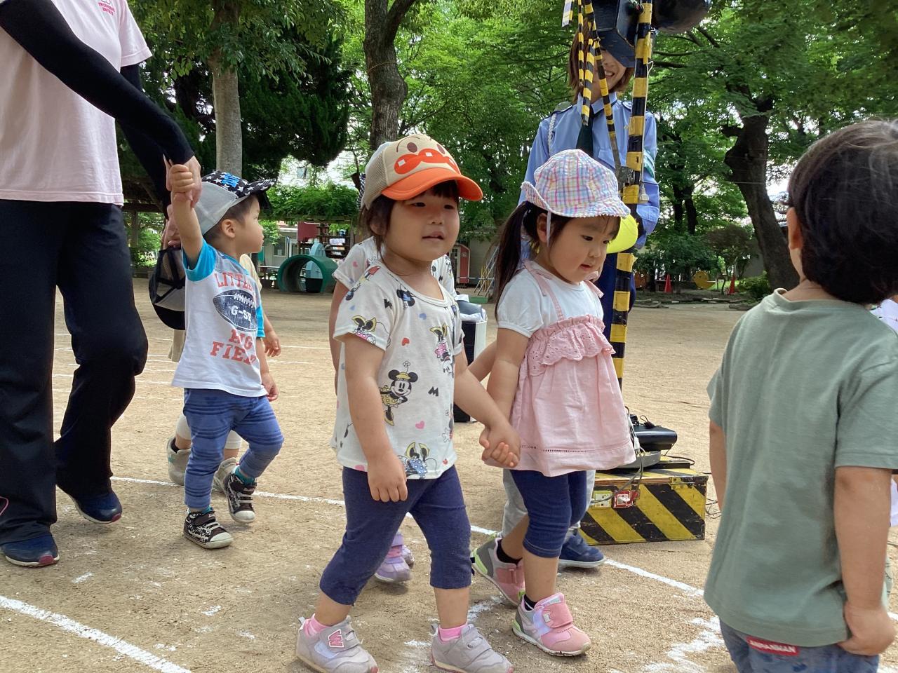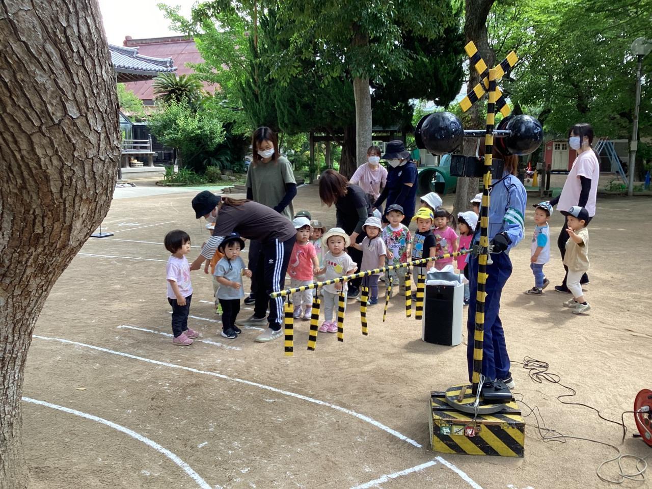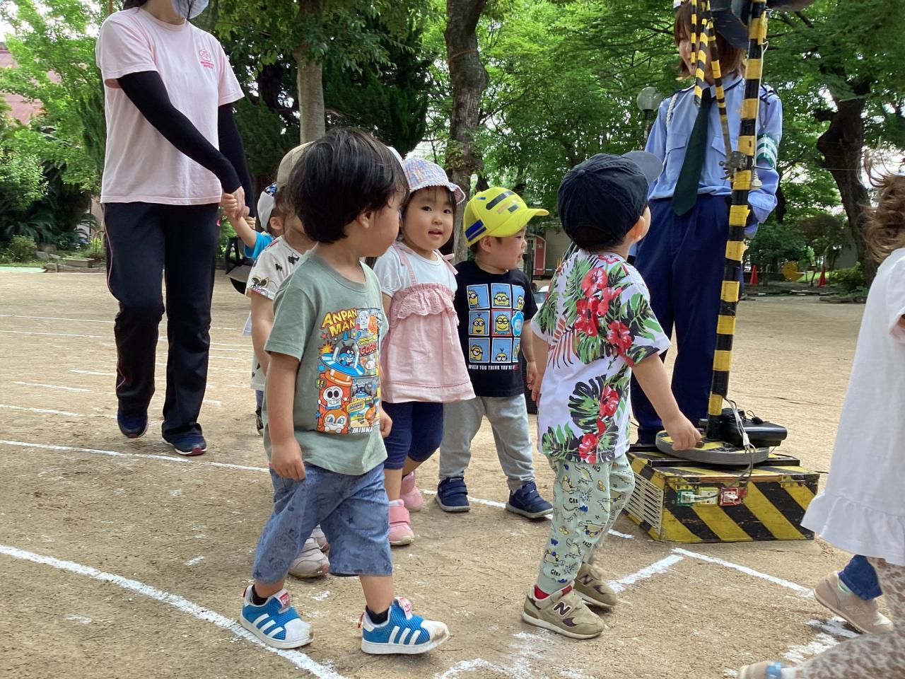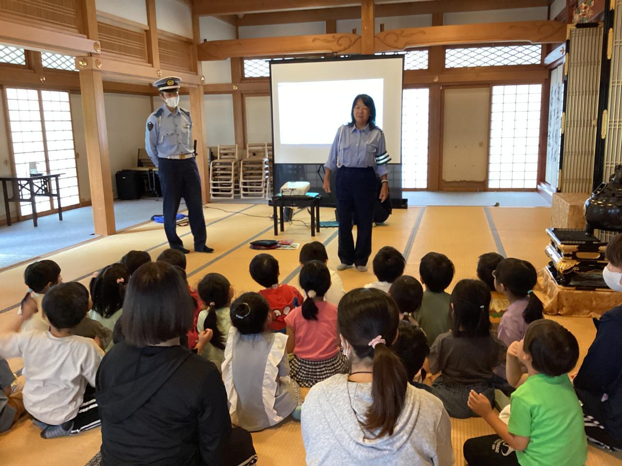 松梅桃組(5、4、3歳児)での参加で、まずは本堂でお巡りさんから交通ルールのお話をして貰いました☺️