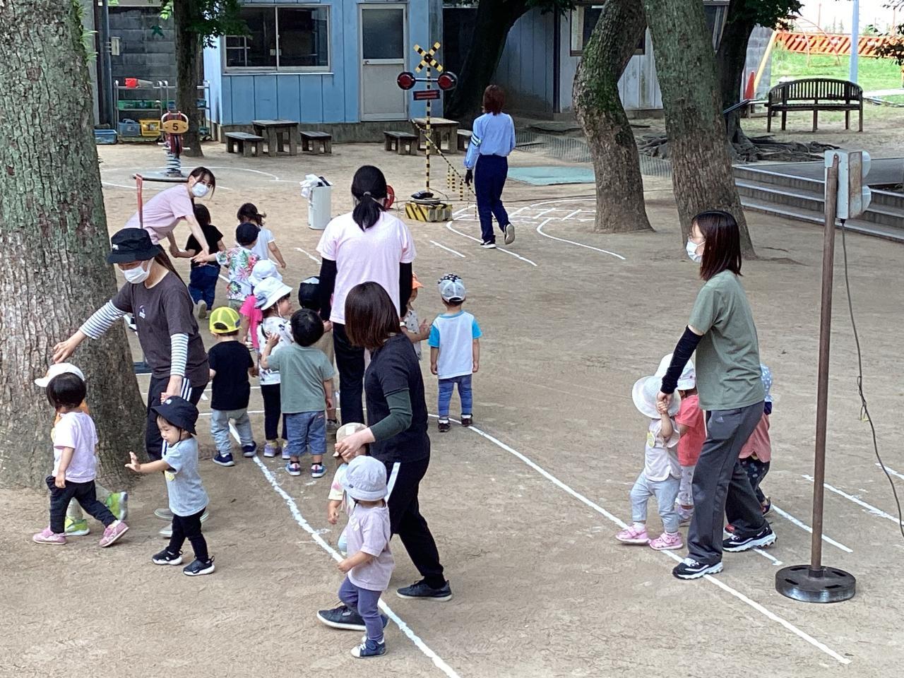 ホール前から信号のある横断歩道を渡り、最後の踏み切りまでを先生と一緒にルールを守りながら歩いていきました。