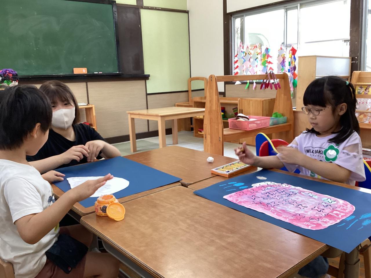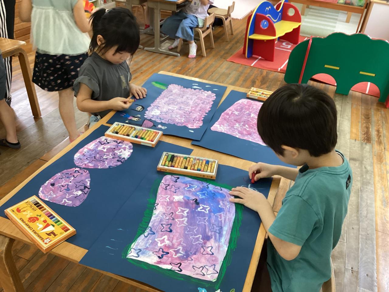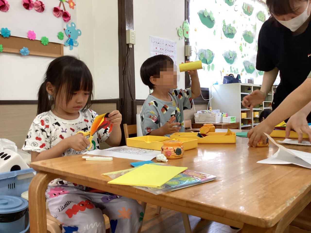↓こちらは七夕製作。難しいちょうちんにチャレンジ❗️