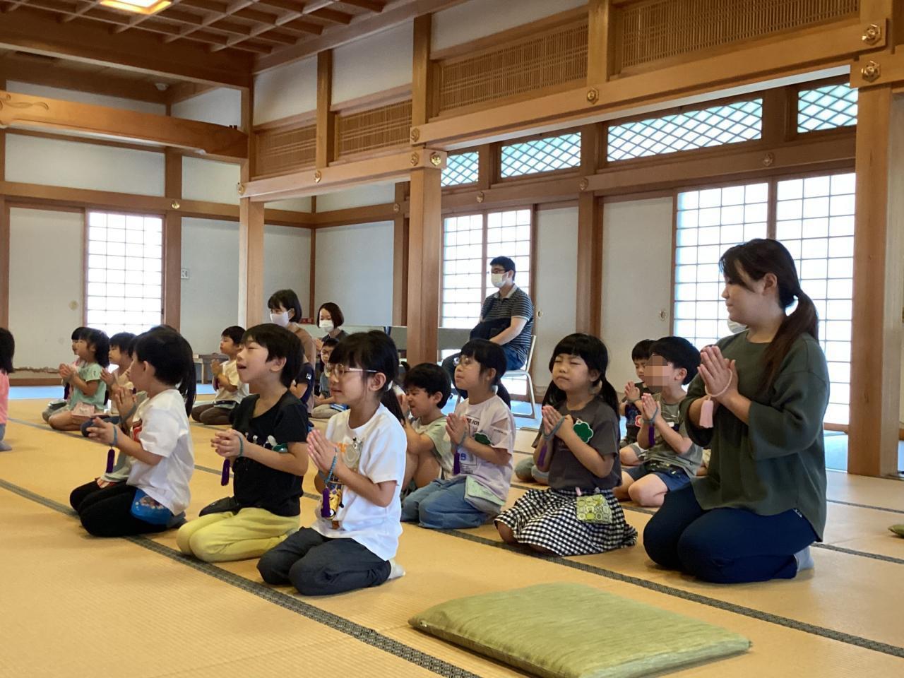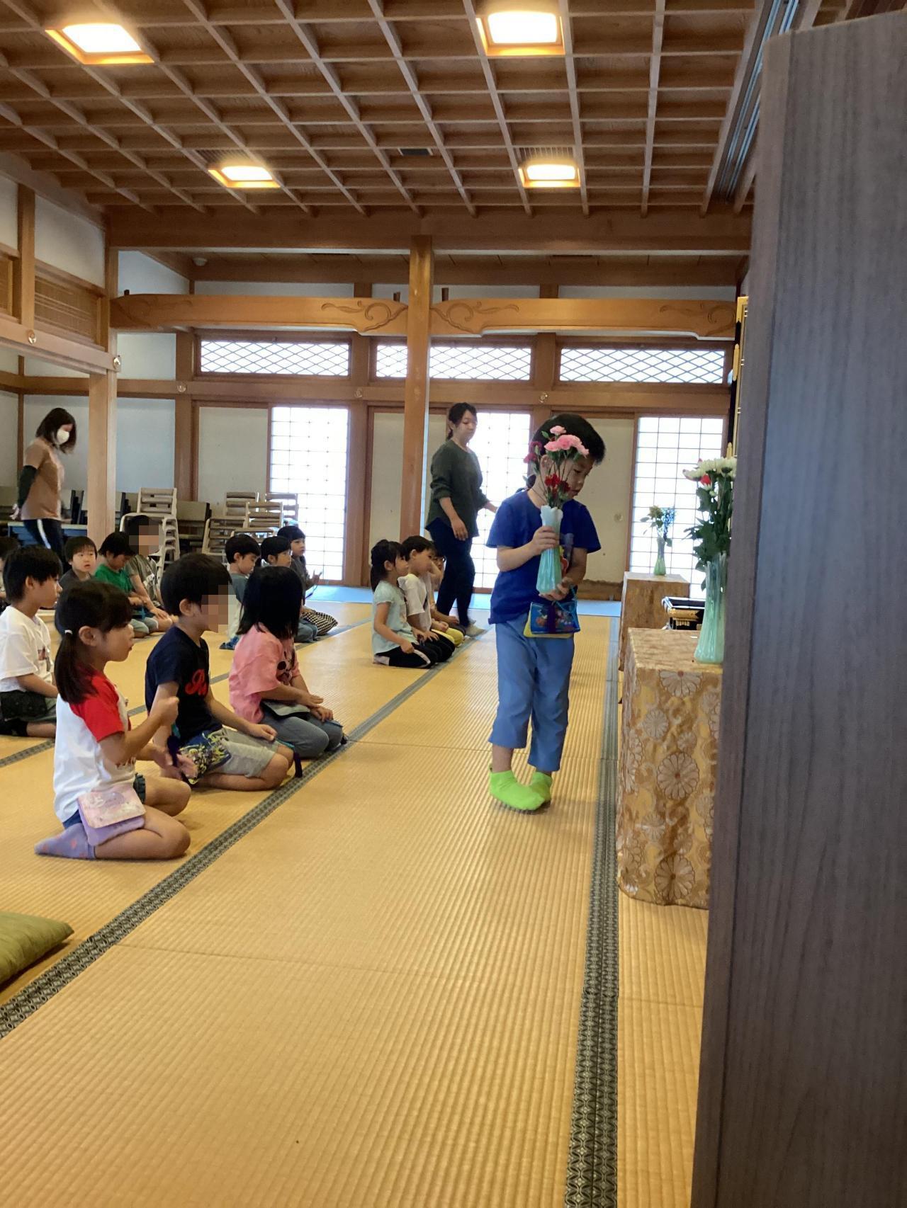 🔵松、梅組(5、4歳児)本堂にて合同保育🔵