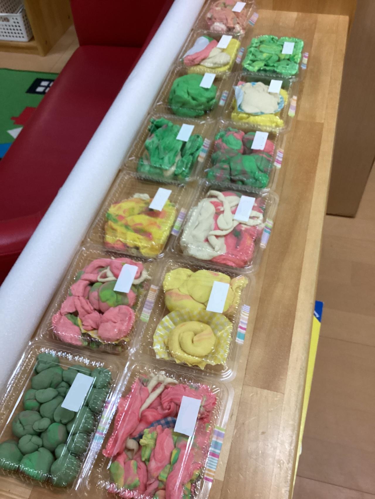 こねてこねて綺麗に色付いた粘土を少しちぎって他のテーブルのお友達と交換していきます。