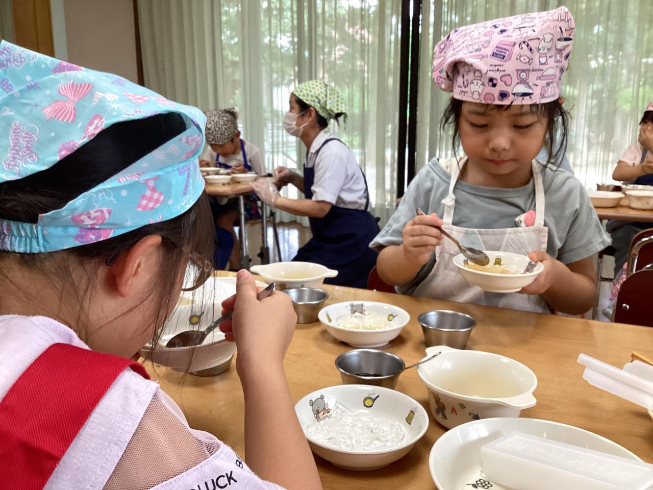 給食室の先生の話を聞いて、ところてんの元になるものを見て触る所から食べる所まで体験しました☺️