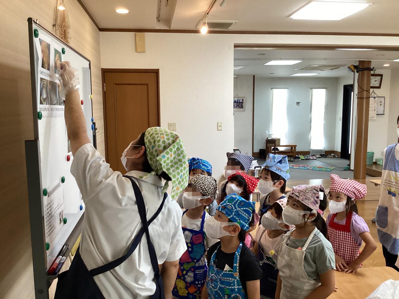 ホワイトボードに貼った写真で作り方の流れを見ていき・・・