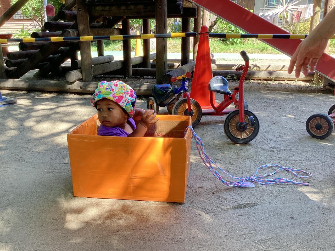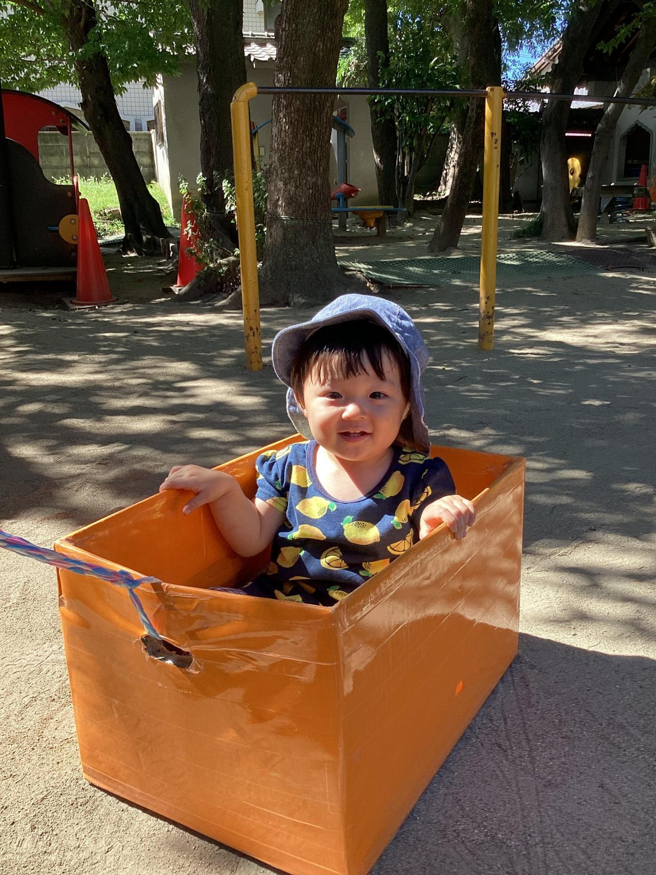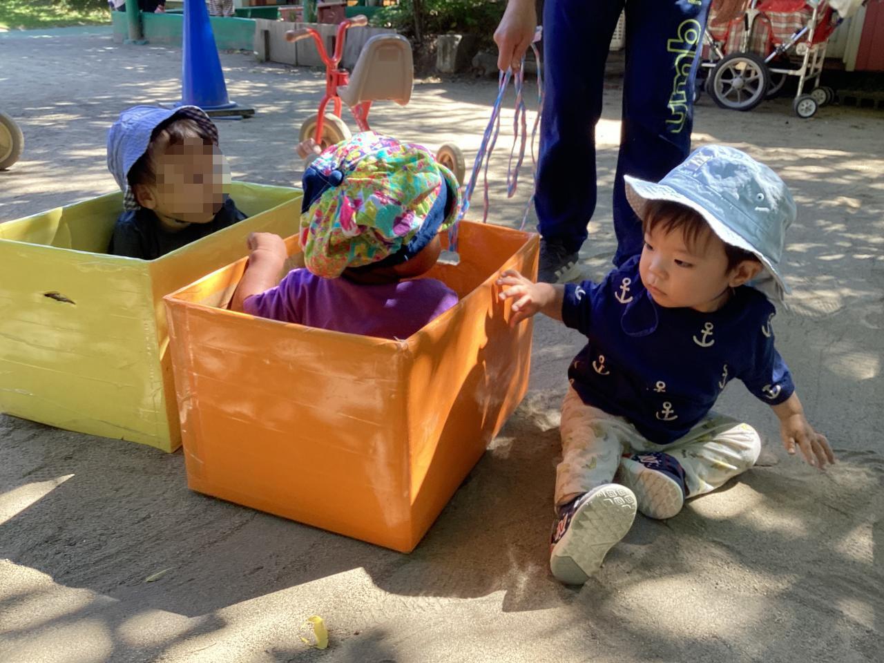 カラフルな箱の中に入って、先生に引っ張って貰っていました♪