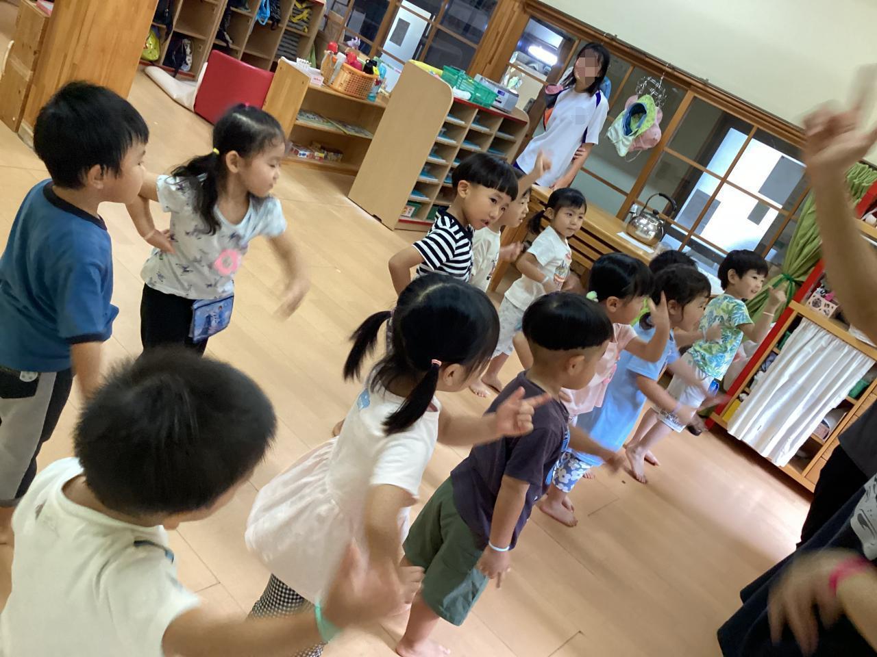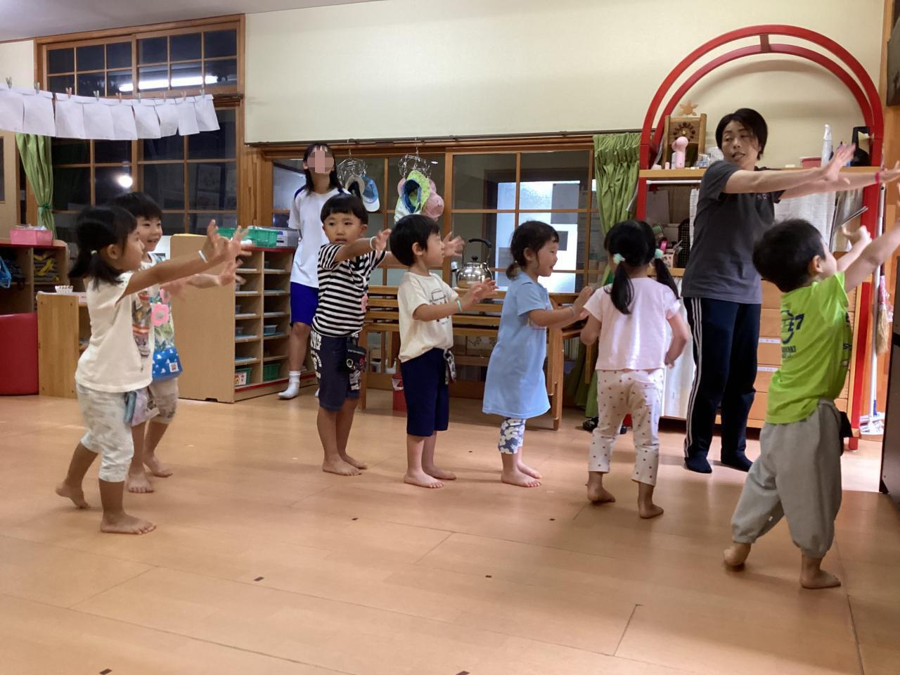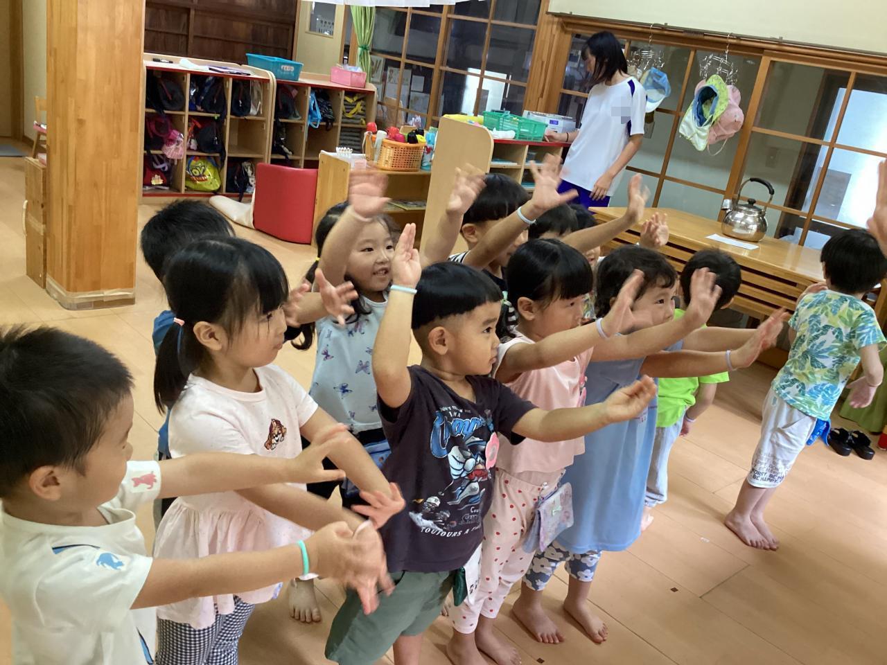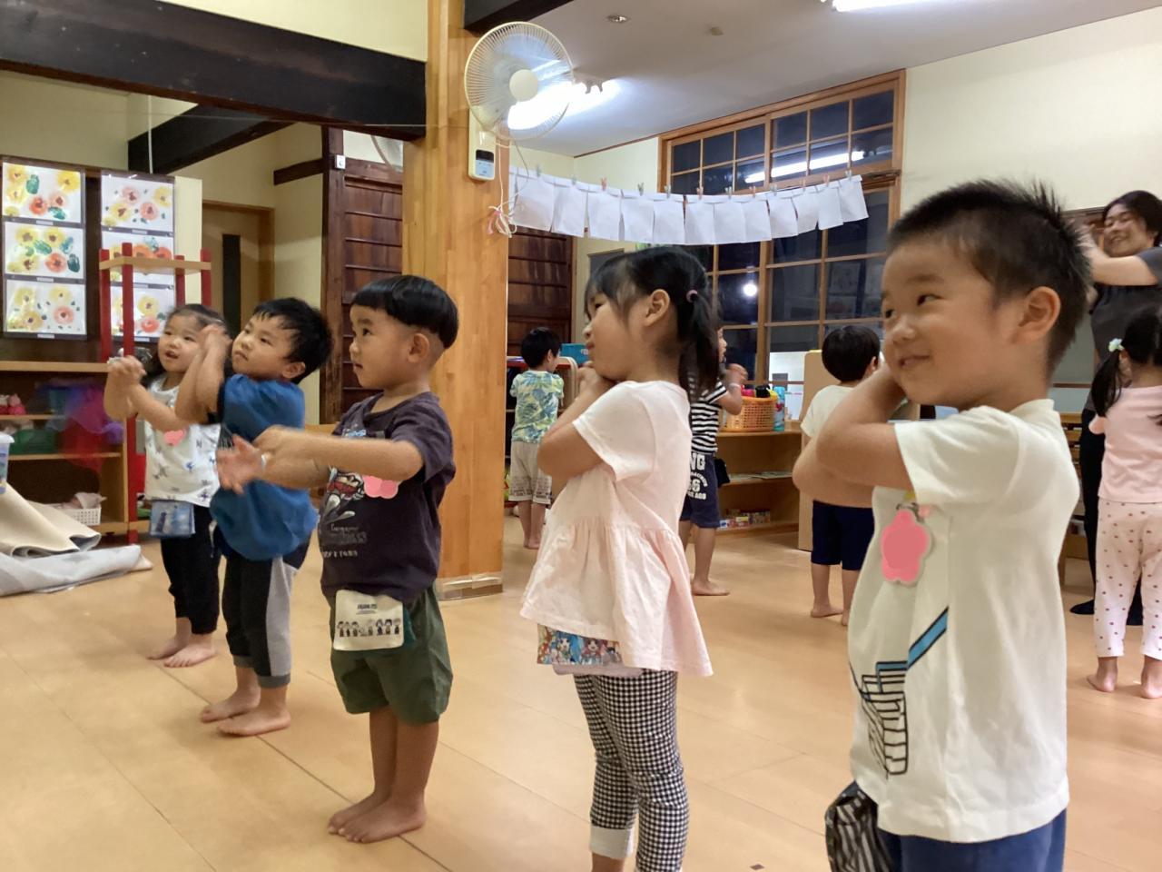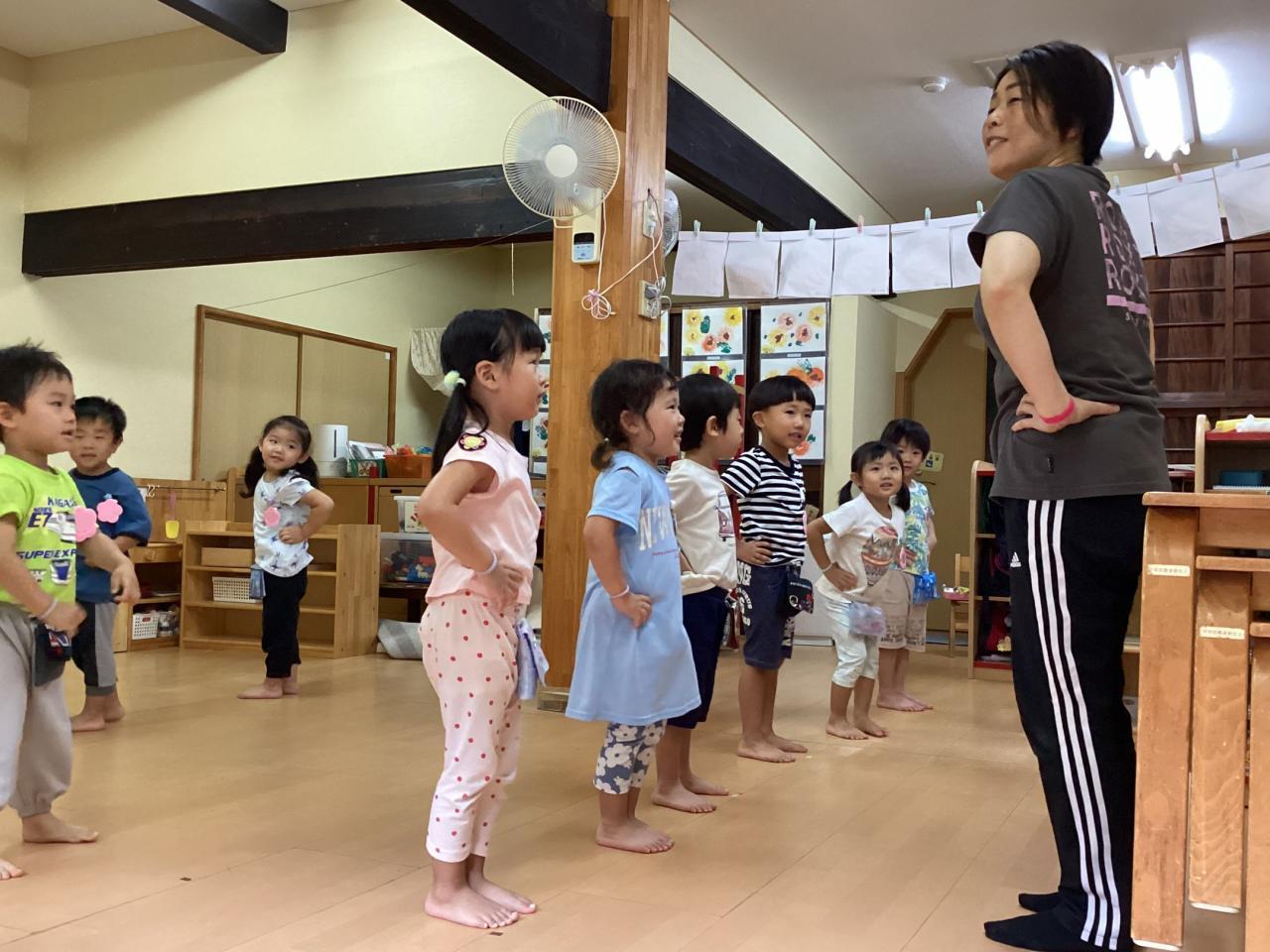 年長組の夏の期間のお昼寝も終わり、次は運動会に向けての練習がはじまりました☺️