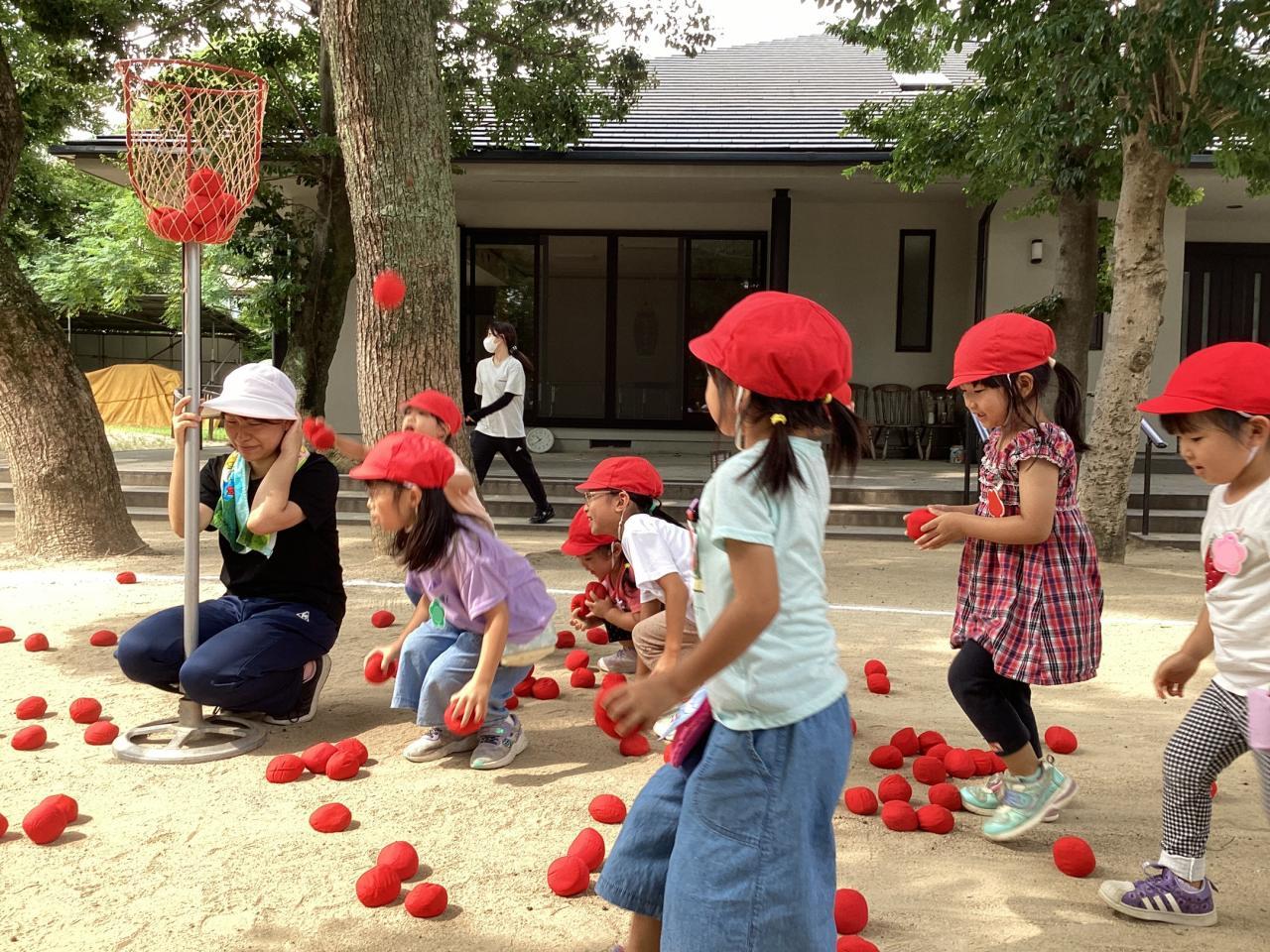2回の玉入れとお片付け競走の3回勝負で勝敗が決まります。