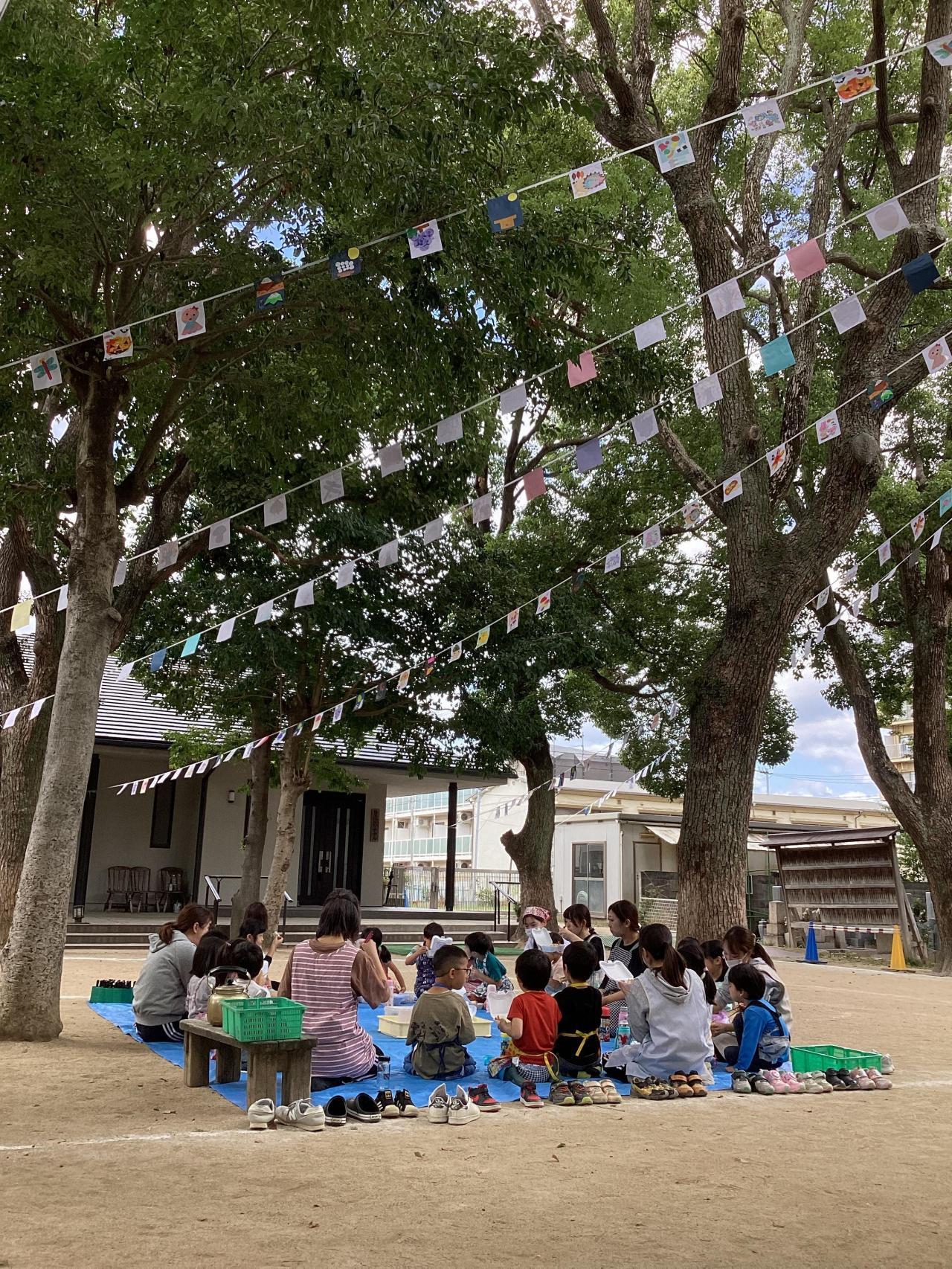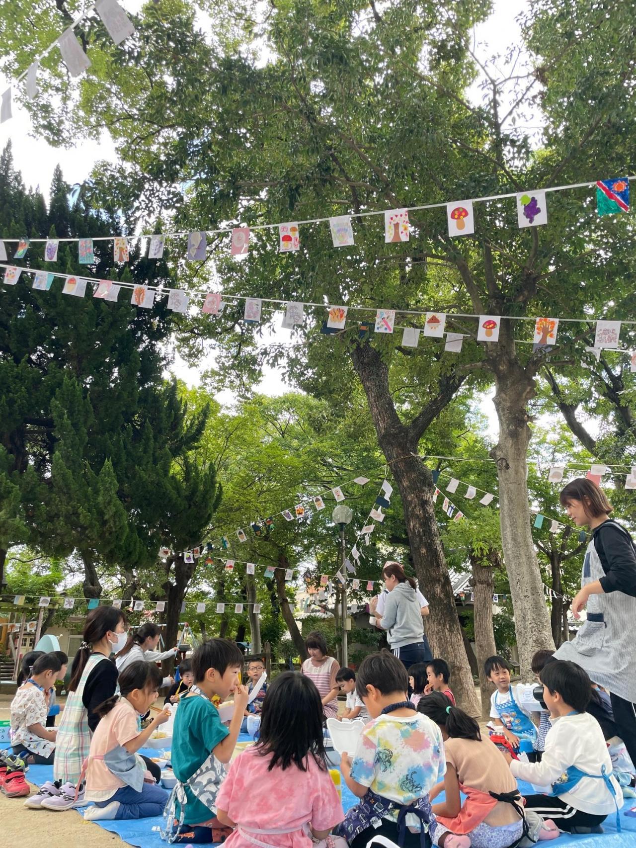 各クラスお手製の旗を頭上に、それを眺めながらのお昼ご飯となりました☺️☺️☺️