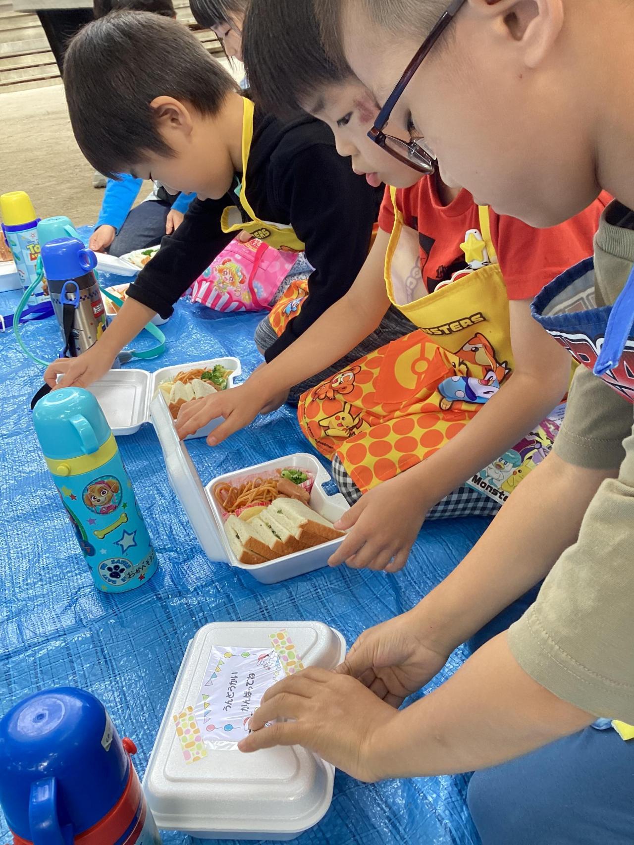 フタについた「うんどうかい がんばってね」のメッセージもまじまじと読んでいました。