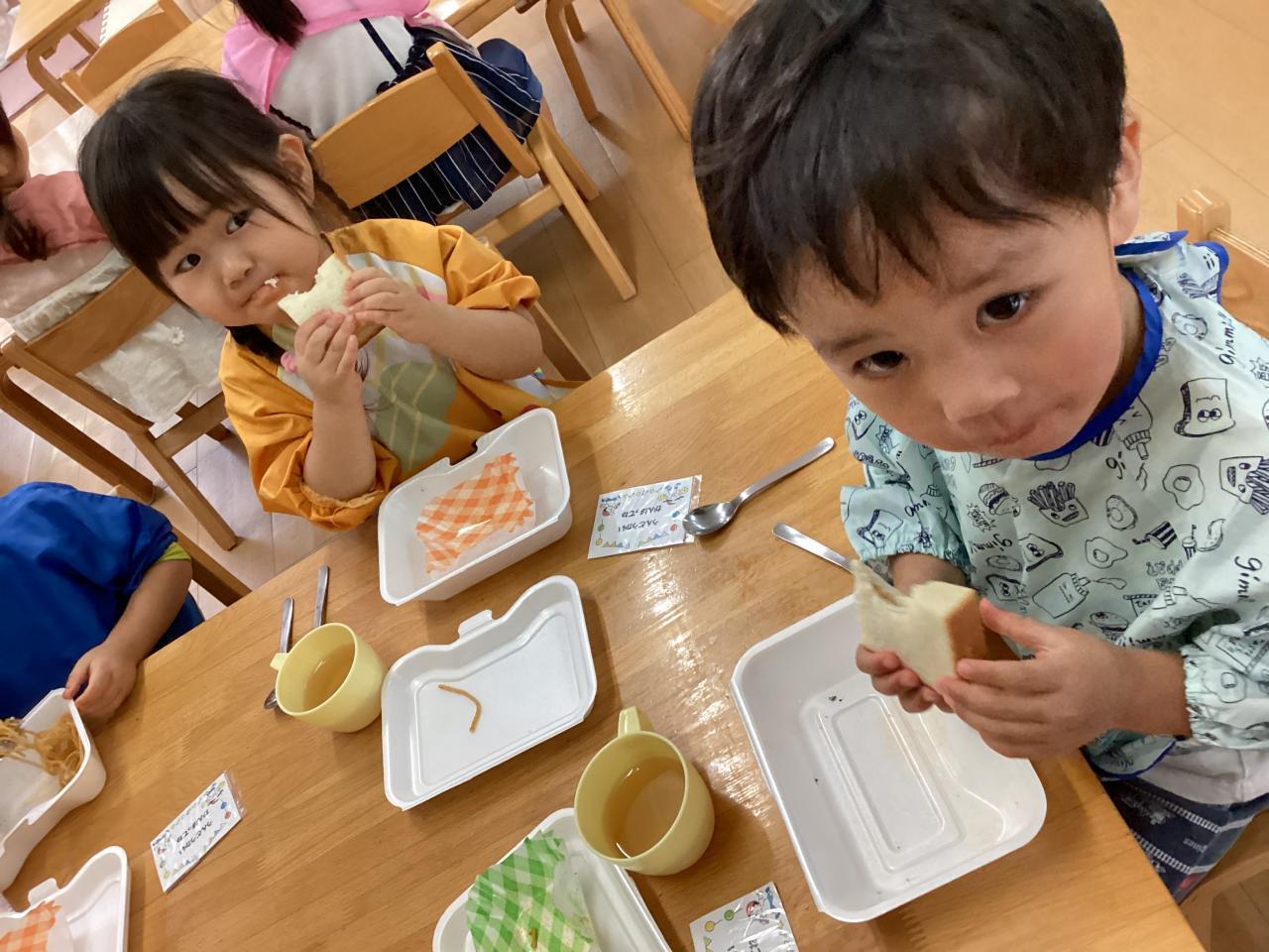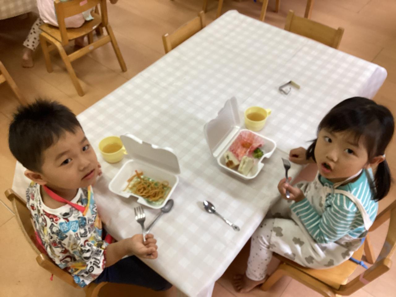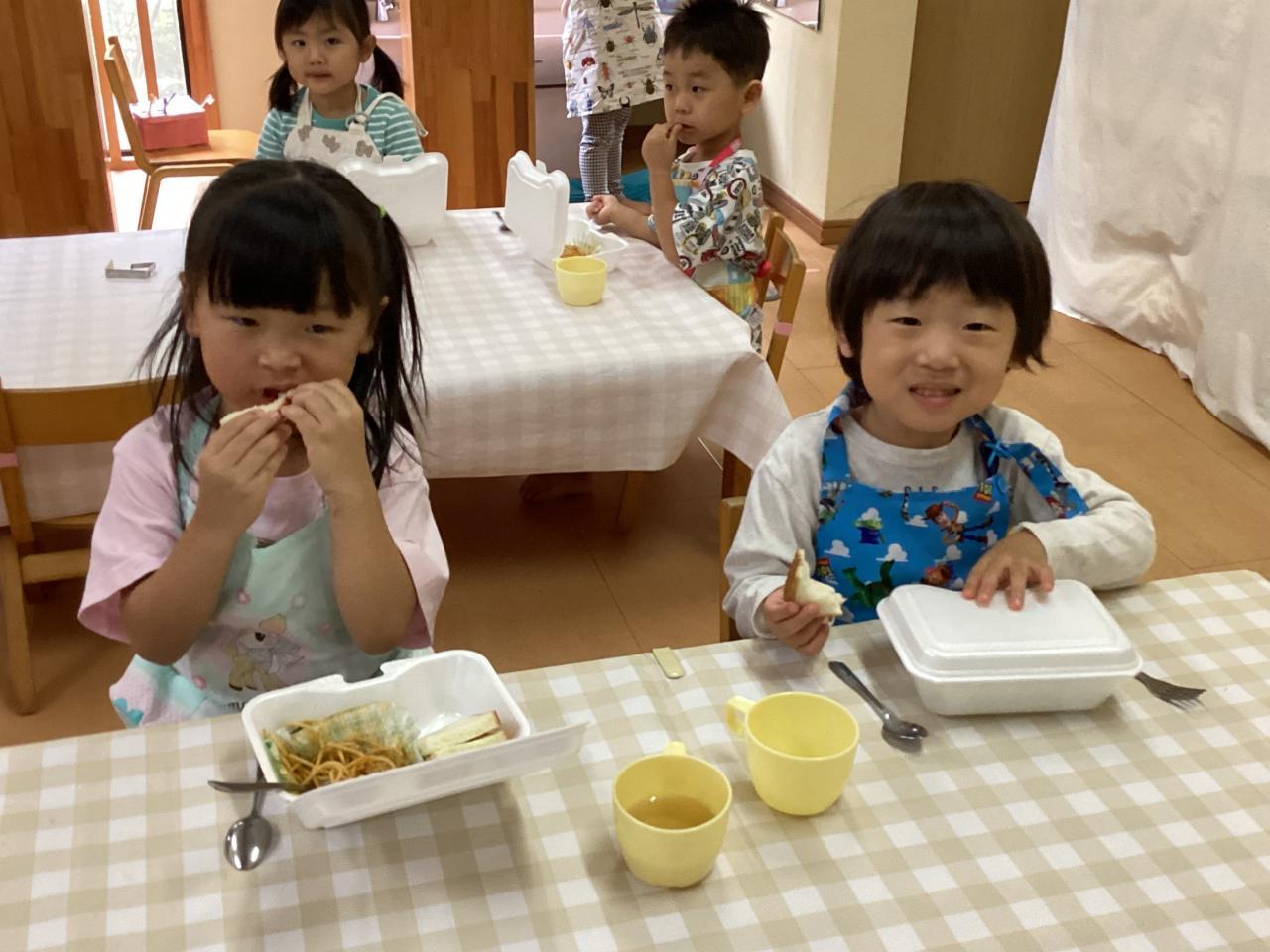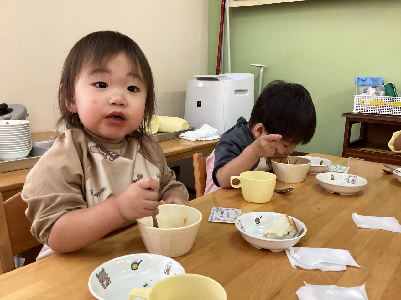 先生達も食べ始め、みんなも黙々と食べていたので思わずおかわりをしたお友達も「早く食べすぎたかな❓」と笑っていました☺️