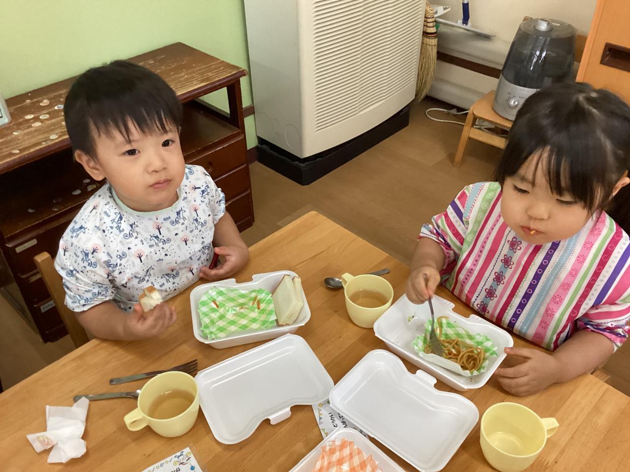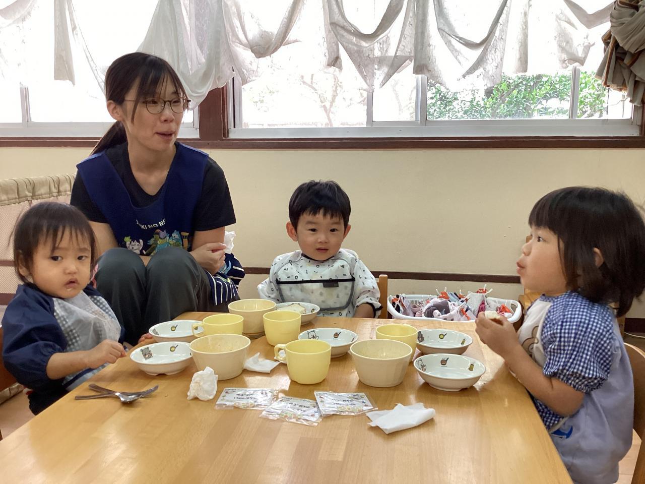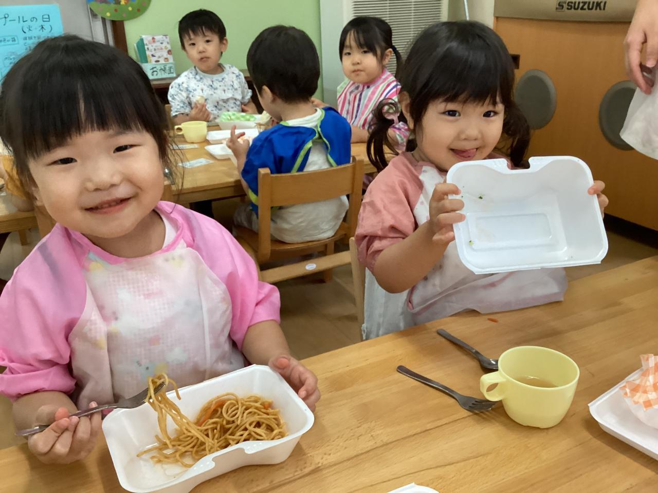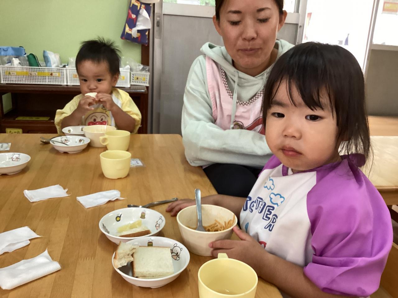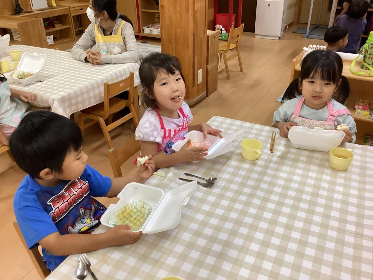 先生達も食べ始め、みんなも黙々と食べていたので思わずおかわりをしたお友達も「早く食べすぎたかな❓」と笑っていました☺️