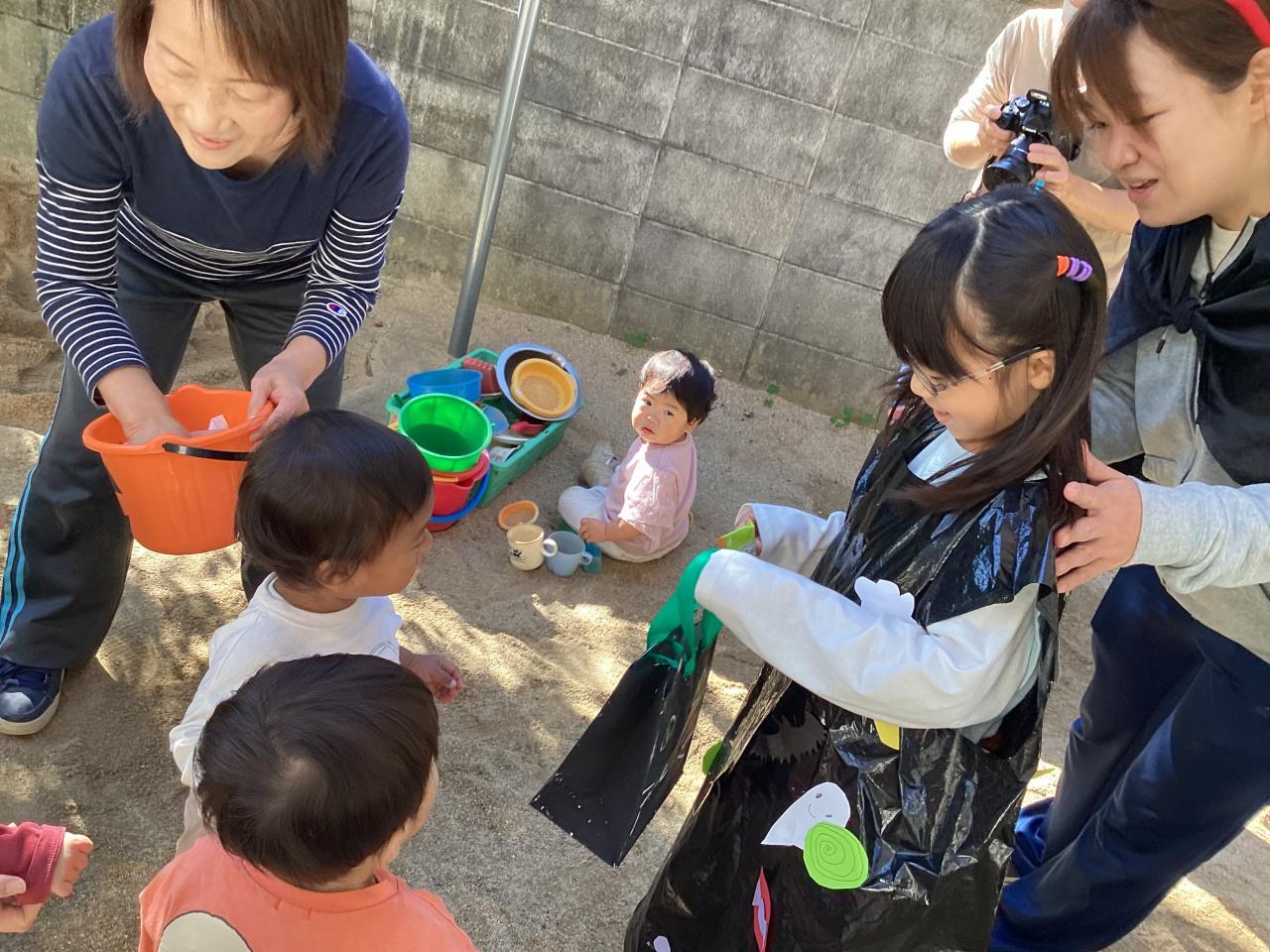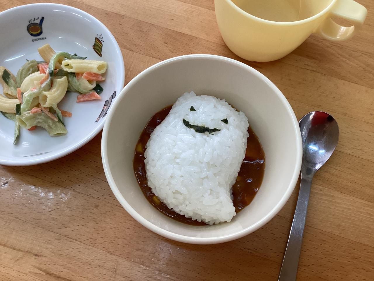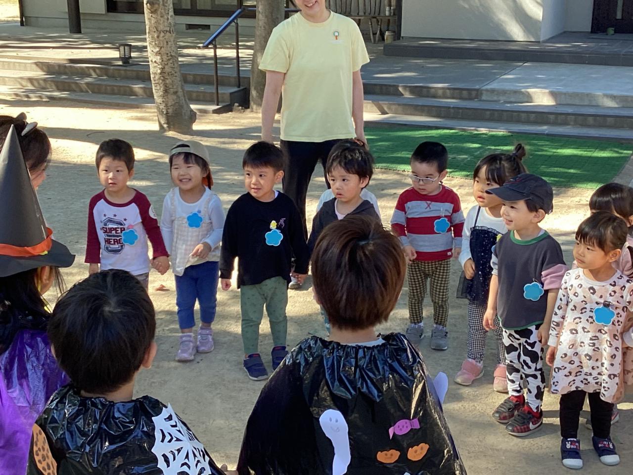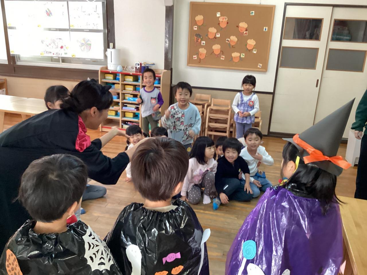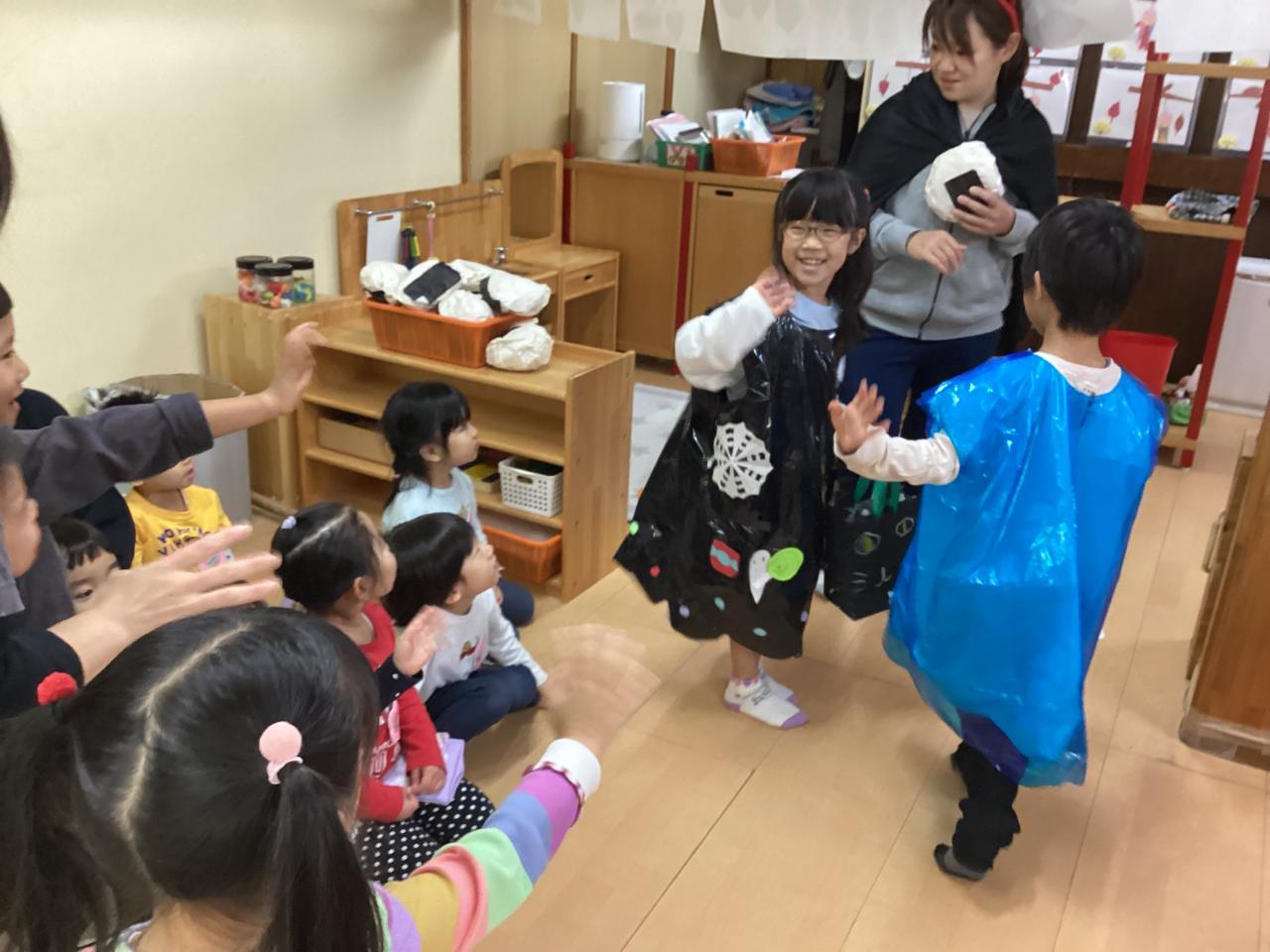 3歳児クラスでは手持ちのお菓子がなくて、絶賛練習中の劇発表会で使用する小道具のおにぎり🍙を「はい〜❗️」とお菓子の無い先生オバケに渡してくれると言うステキエピソードもありました☺️