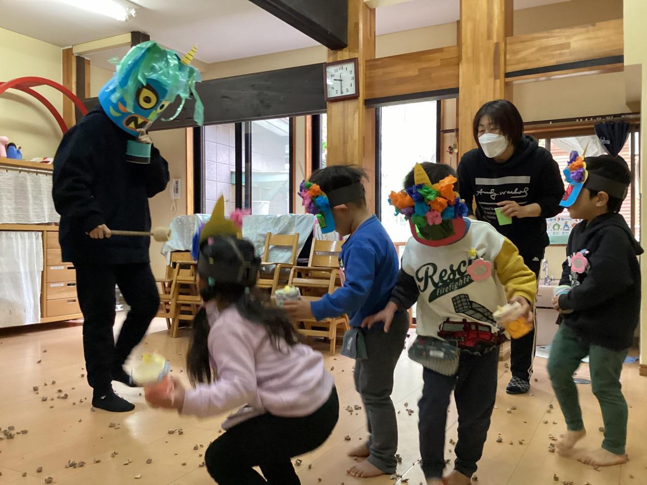 「おにはそと〜❗️」「おにはそとっ‼️」「おにはそとっ‼️」