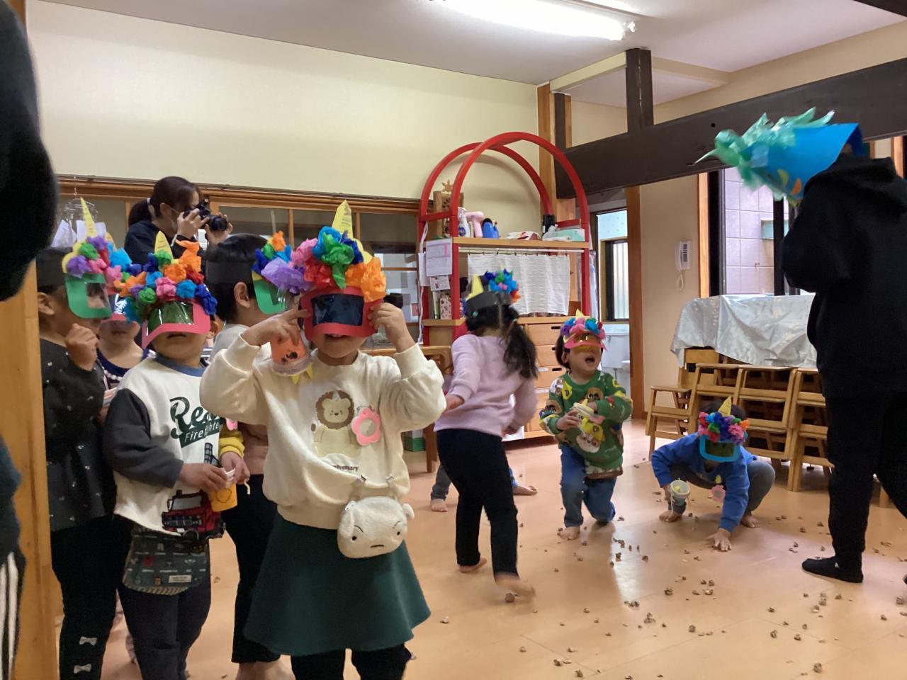 でもその前に、保育園でも自作のお面マスを持って豆まきをしました☺️