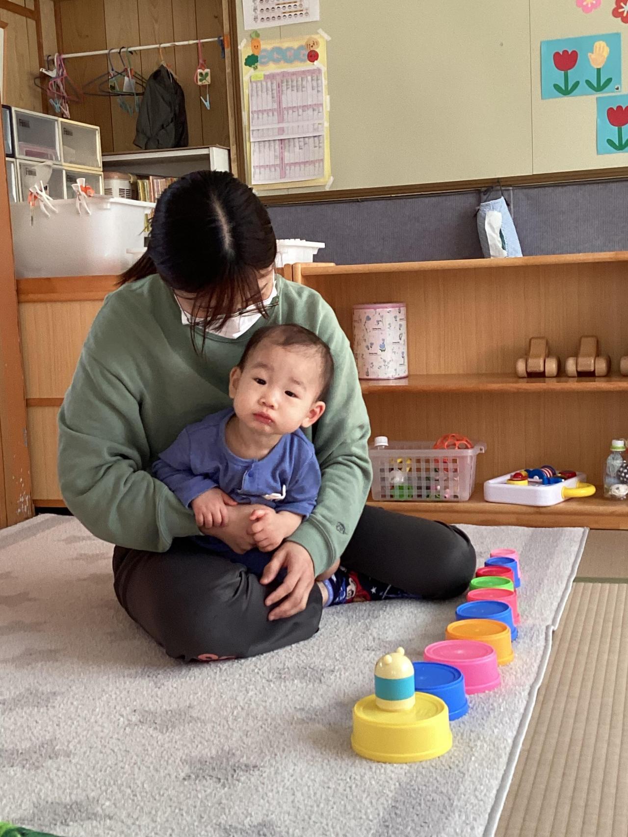 人見知りが始まっているお子さんもいて、この頃には担当の先生以外の保育士の顔を見て泣いてしまう場面も・・・