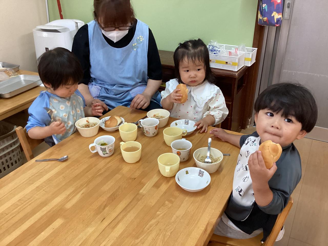 給食も週一のパン🍞の日でパン好きのお子さんはモリモリと食べていました☺️☺️☺️