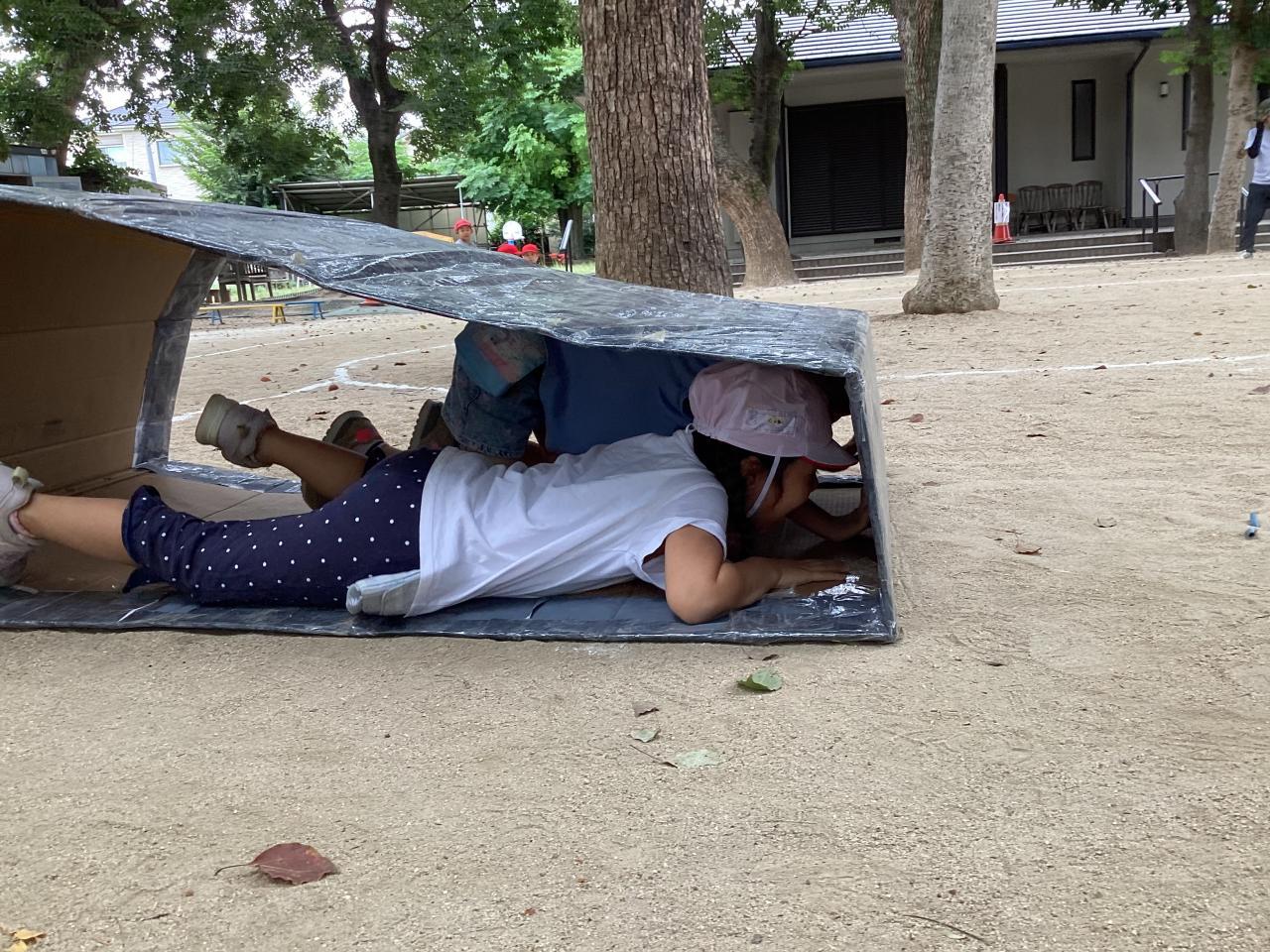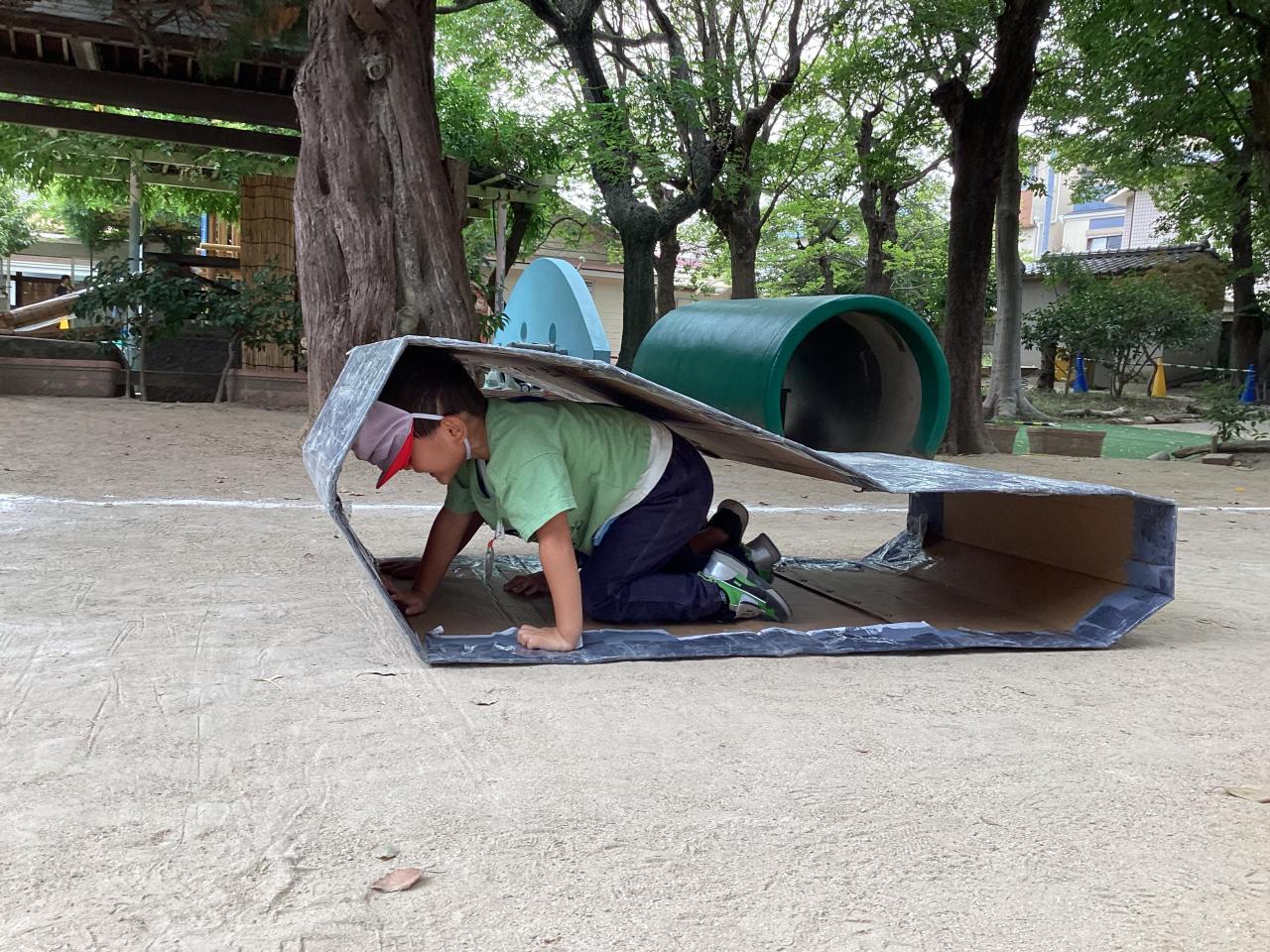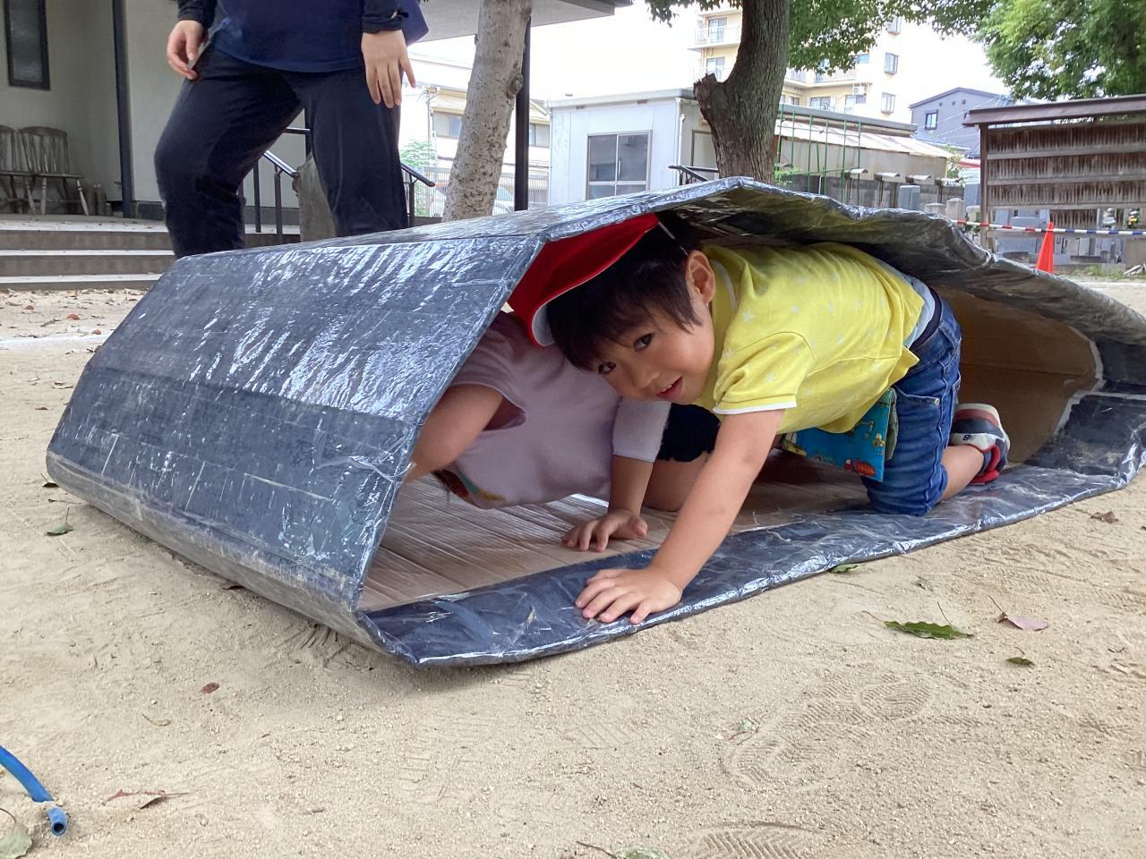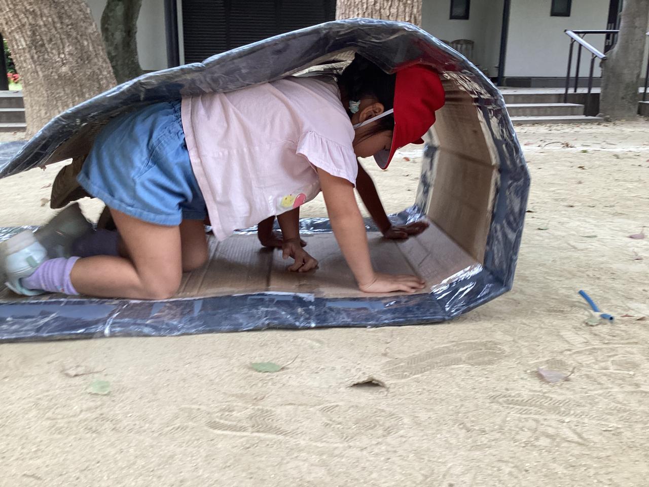 大きなだんごむしのキャタピラの中に入って、今日はお友だち同士で頑張っていました😀