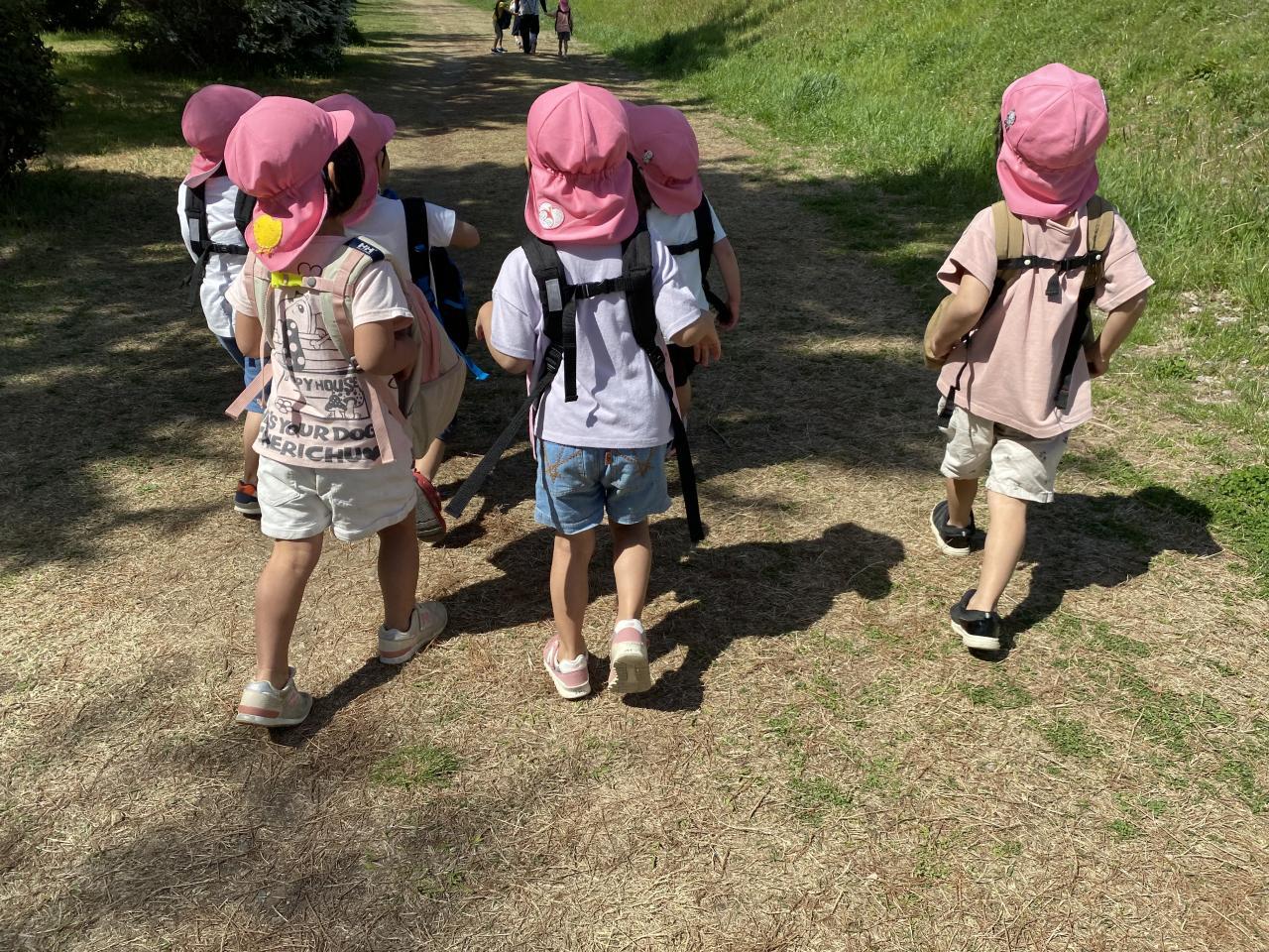 3月28日(火)に3歳児ごりら組、4歳児かば組でお別れ遠足に行きました。行先は元浜緑地です。かば組は2回目の元浜緑地だったので、ごりら組をリードして歩いていました。ごりら組にとっては遠出の遠足で往復徒歩だったので、歩けるかなぁ?と心配しましたが、みんな元気いっぱい歩いていました。かば組の子ども達は体力が余っているようで、走り出す子もいました。